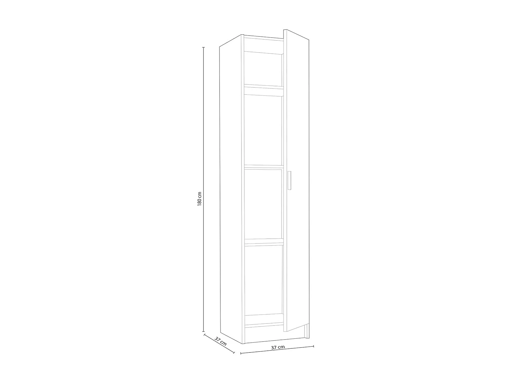 Armoire polyvalente avec 1 porte et 4 étagères, couleur blanche - Longueur 37,2 x Hauteur 180 x Profondeur 37 cm