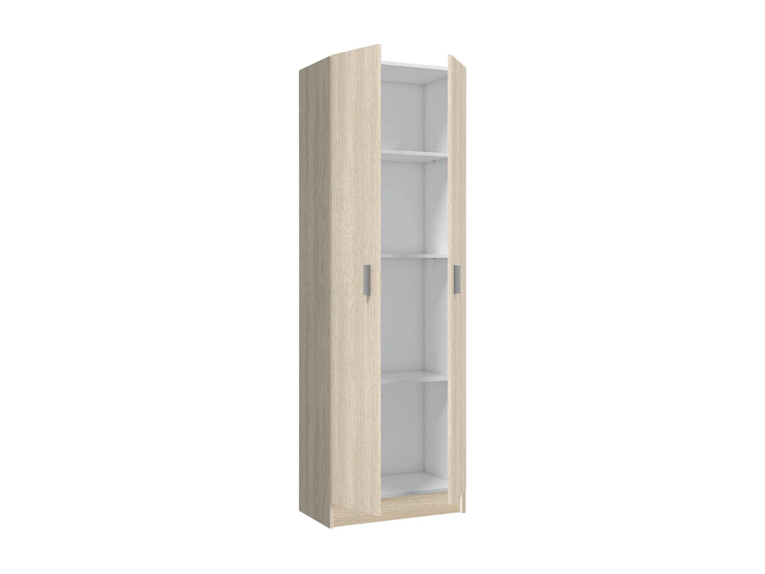 Armoire polyvalente Dmarra, Armoire auxiliaire avec 2 portes, Étagère à chaussures avec 3 étagères, Étagère à chaussures haute moderne, 59x37h180 cm, Chêne