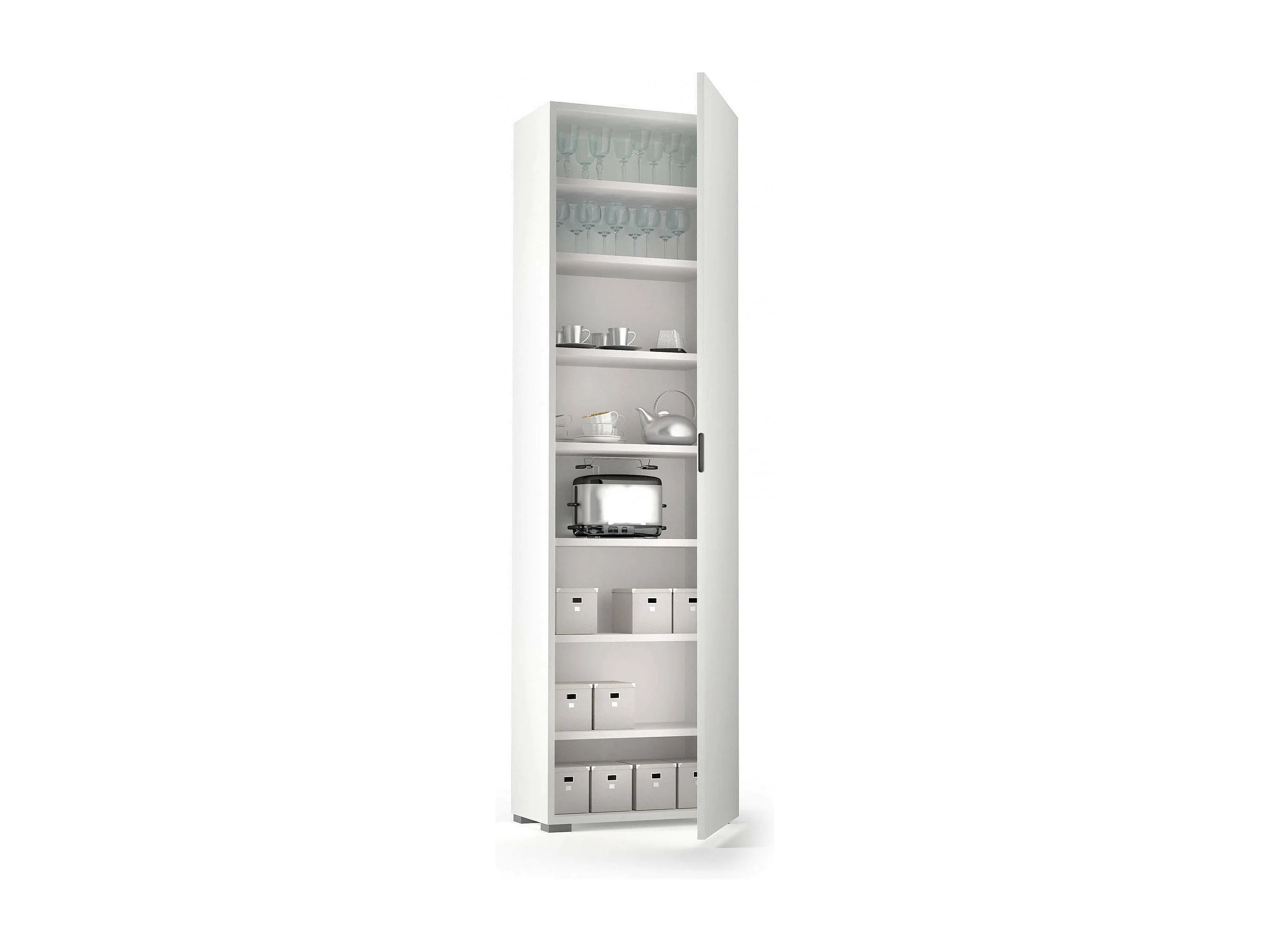 Armadio multiuso Fiordaliso, Mobile lineare a 1 Anta e 7 ripiani, Colonna da ingresso o bagno, Scarpiera moderna, 100% Made in Italy, 50x30h182 cm, Bianco