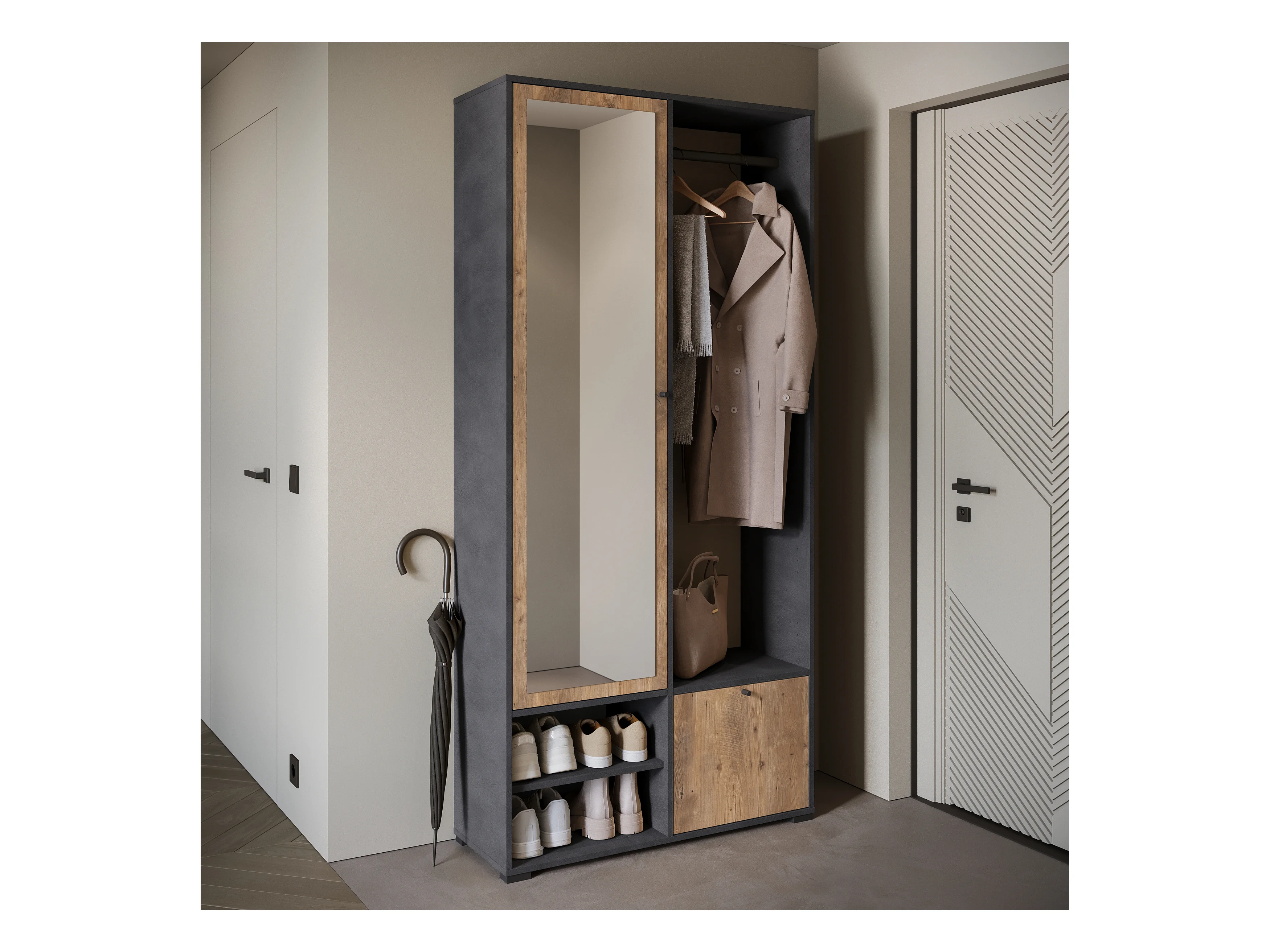 Armoire moderne 90 cm armoire dentrée avec miroir étagères et tringle mat matera kastanien breslau