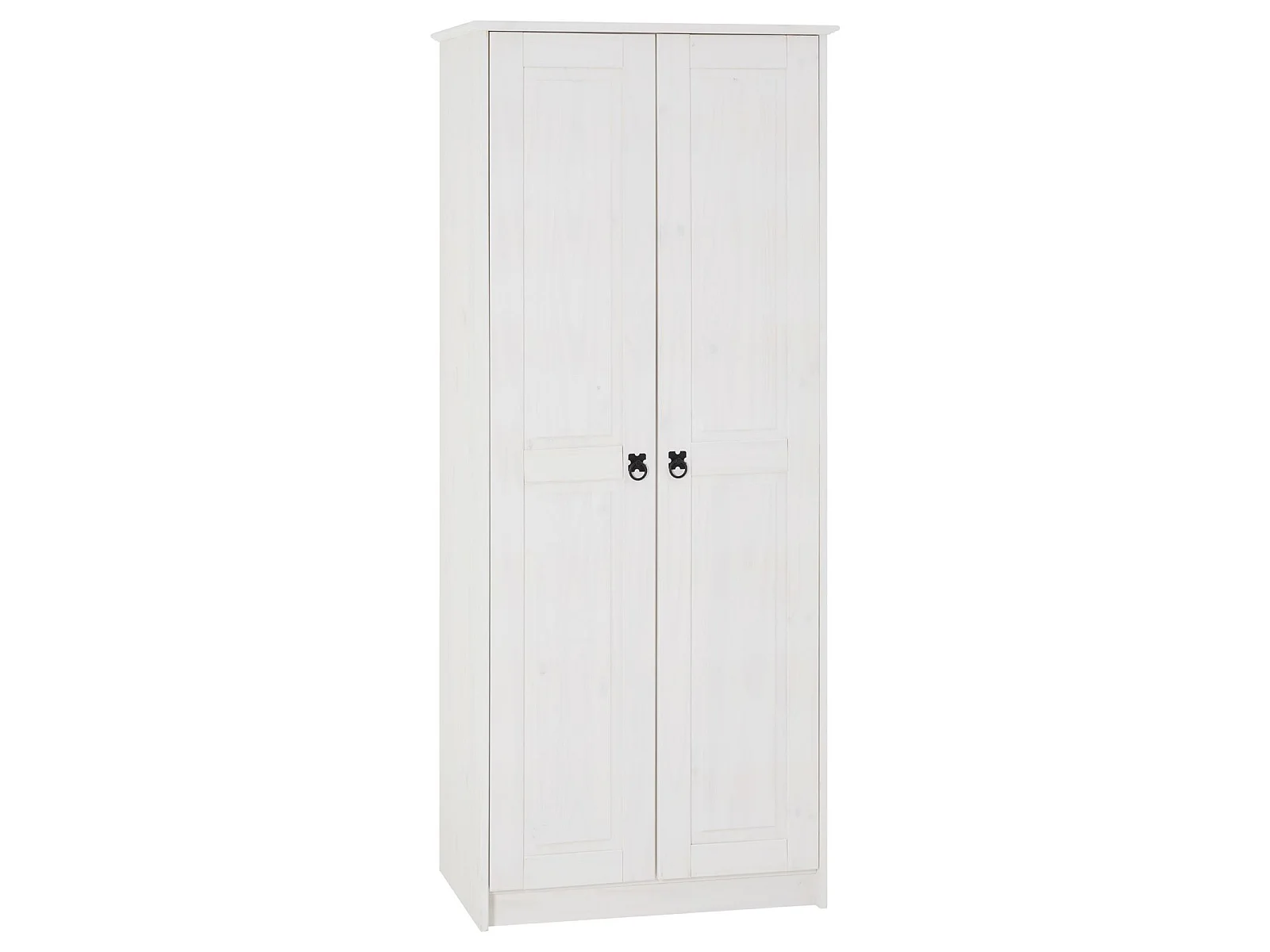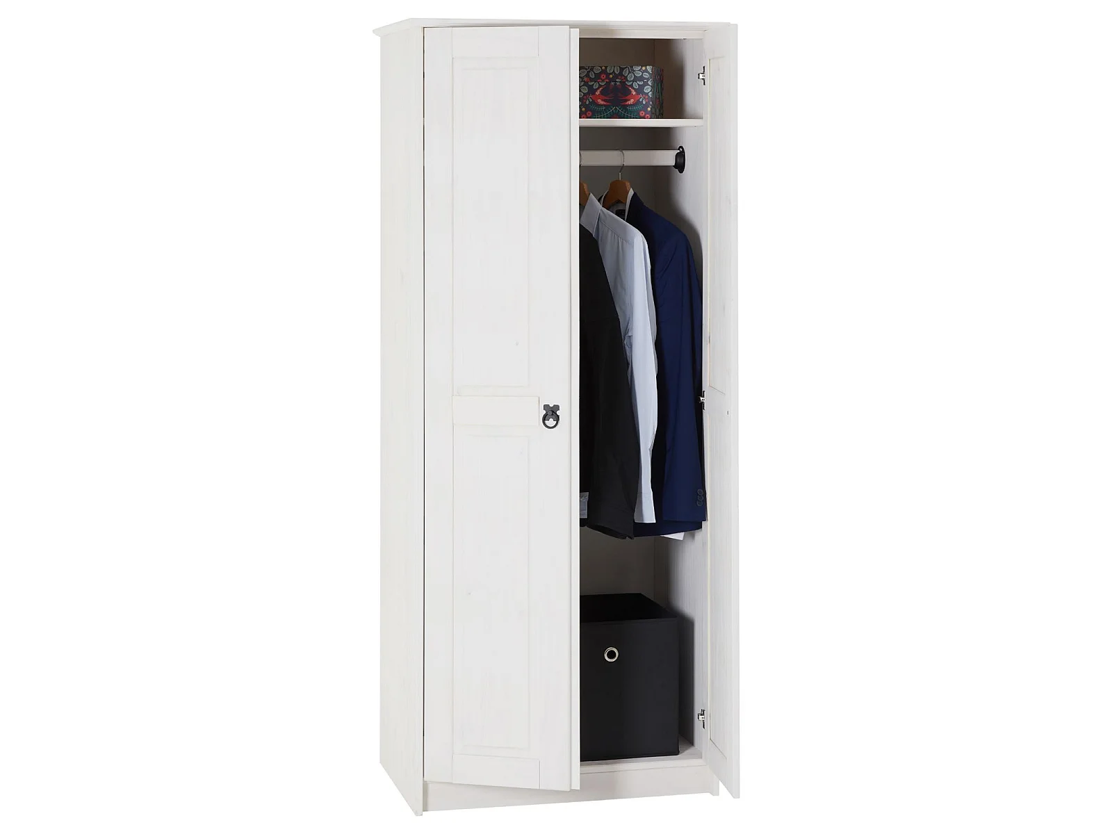 Armoire RESIDENCIA en pin lasuré blanc, penderie pour vêtements style mexicain avec 2 portes