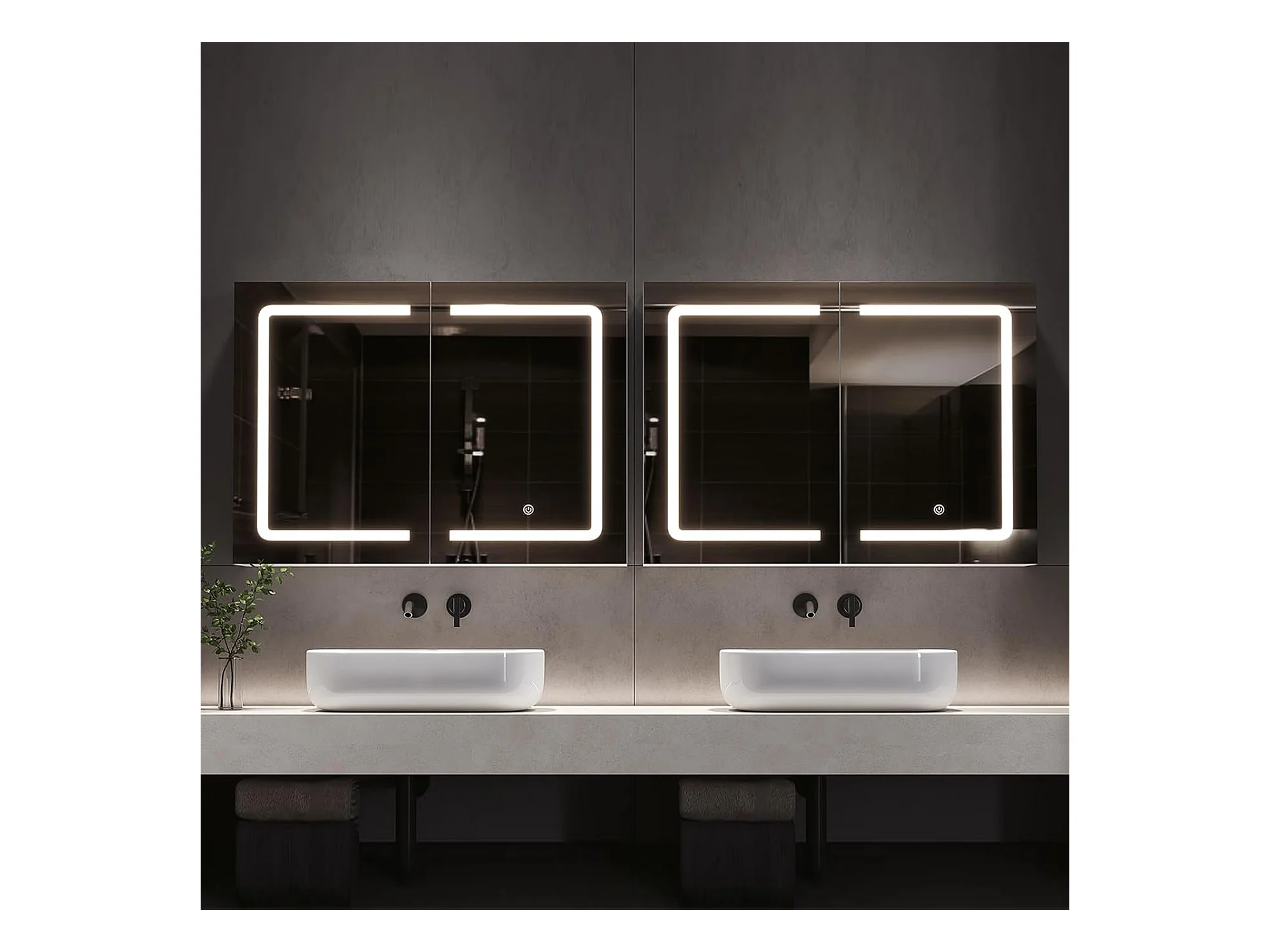 EMKE Armoires de toilette 60x65cm Blanche Armoire Salle de Bain en Miroir Double Face