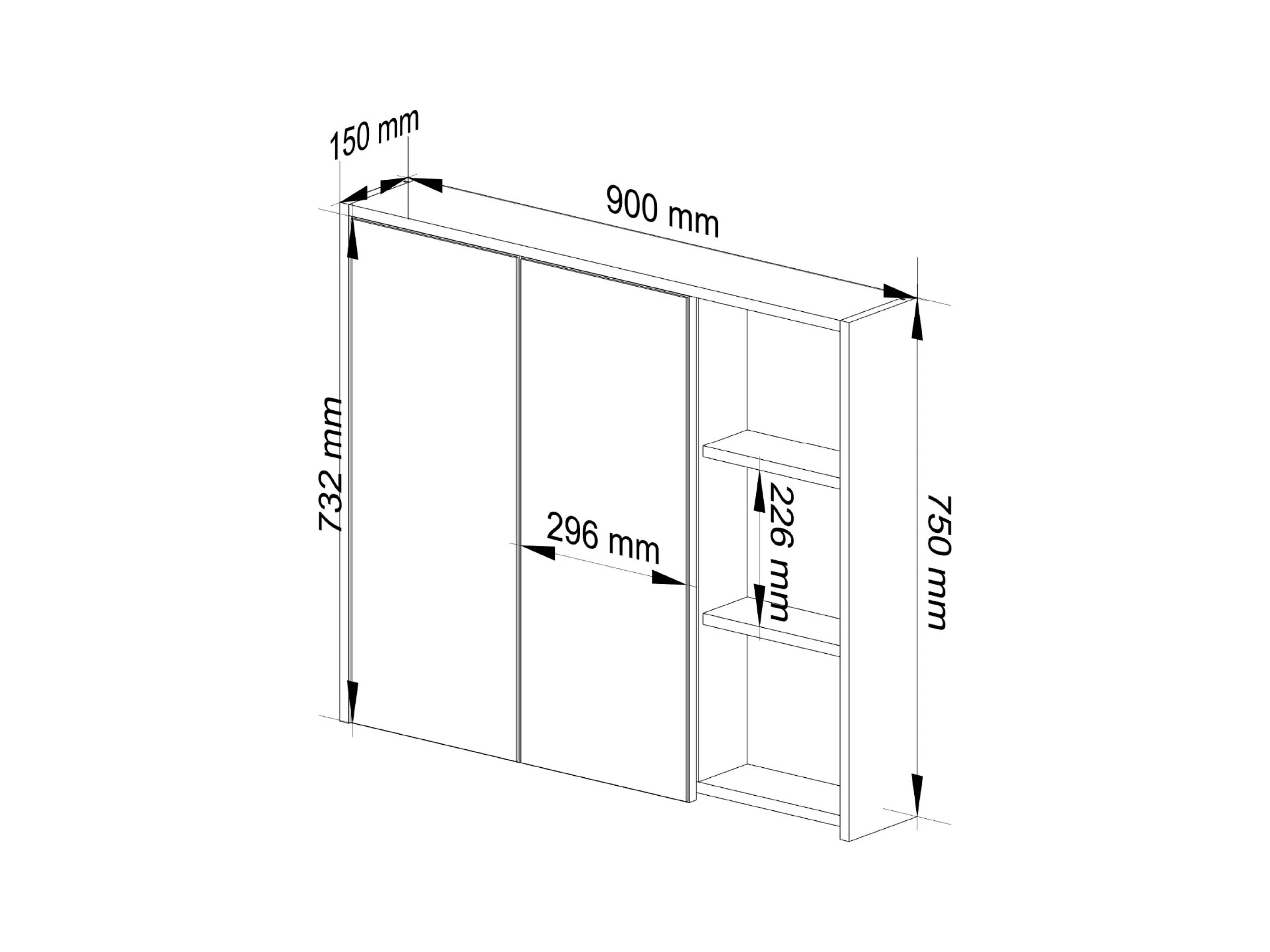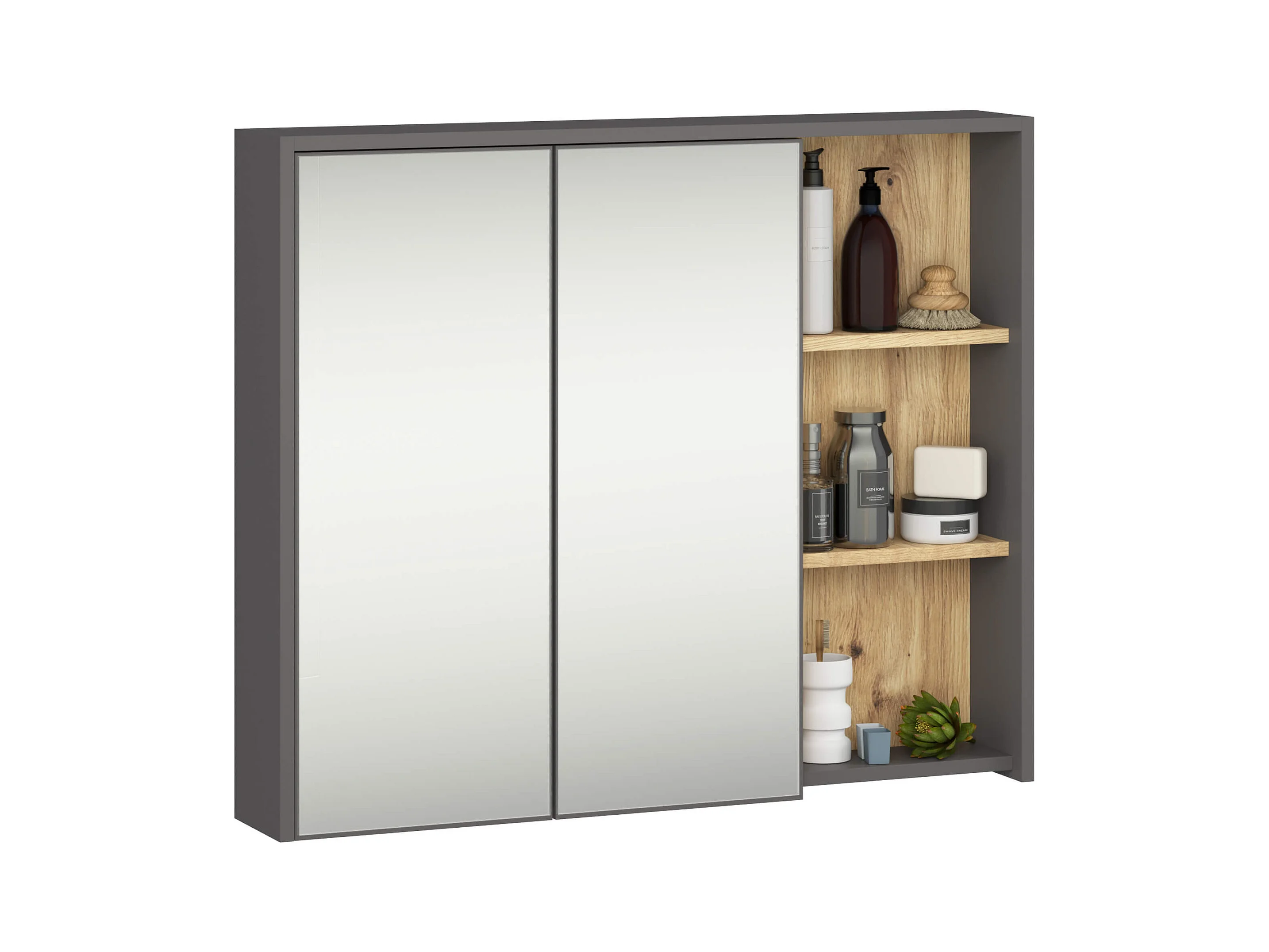 Armoire salle de bains VAMI suspendu avec miroir Gris Graphite et Chêne Artisan 90 cm 2 portes 6 étagères 90x15x75 cm