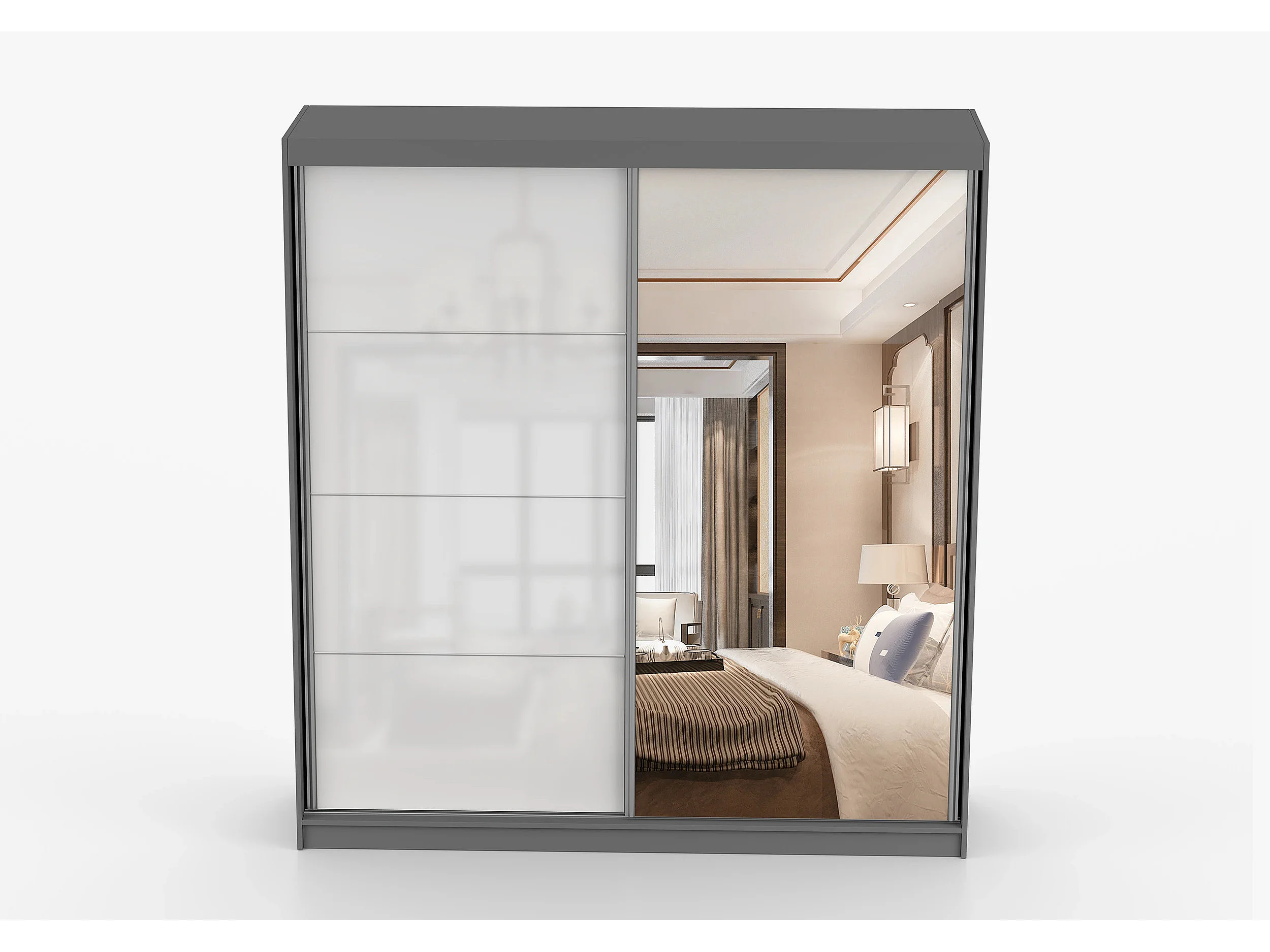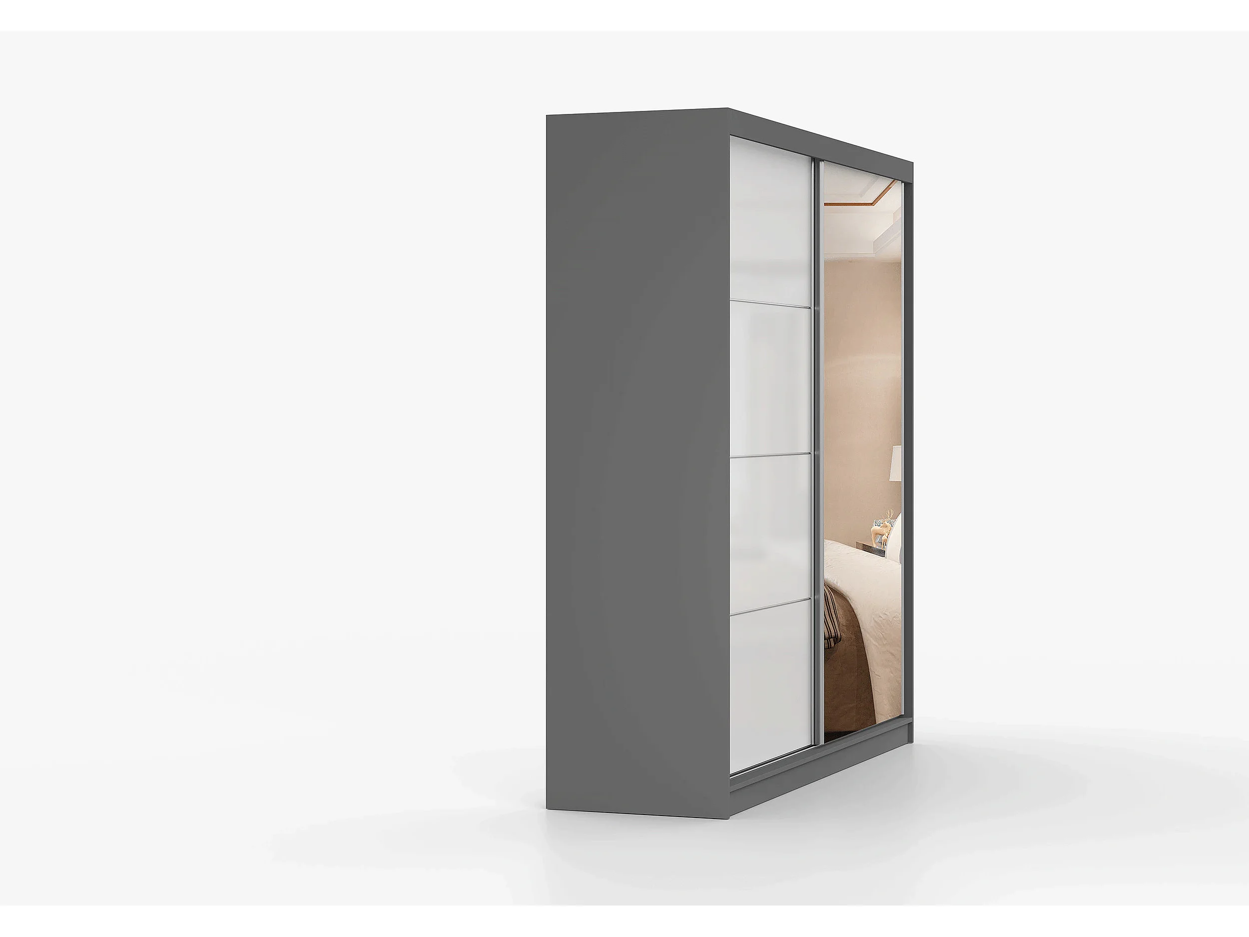 Armoire Séphira 203 cm avec miroir - Gris - Blanc