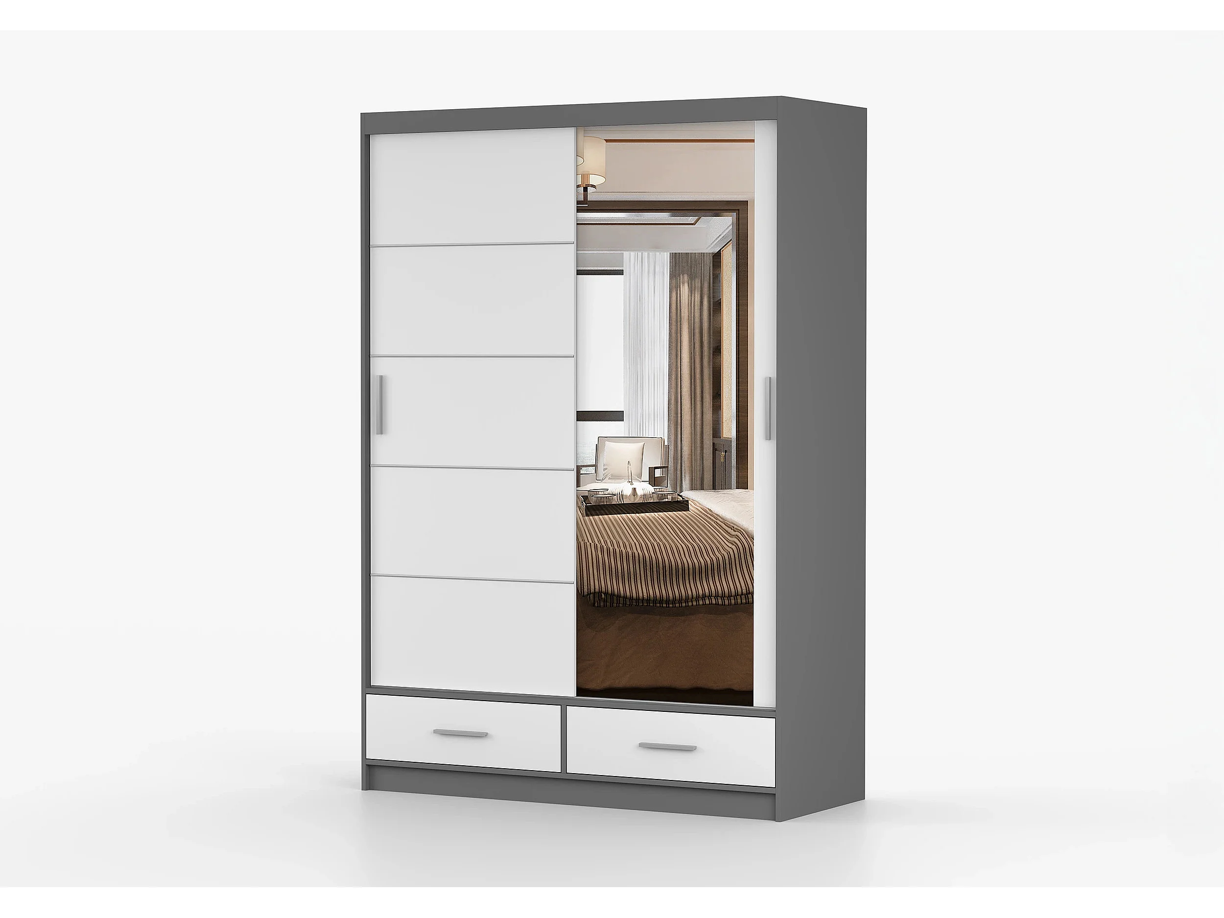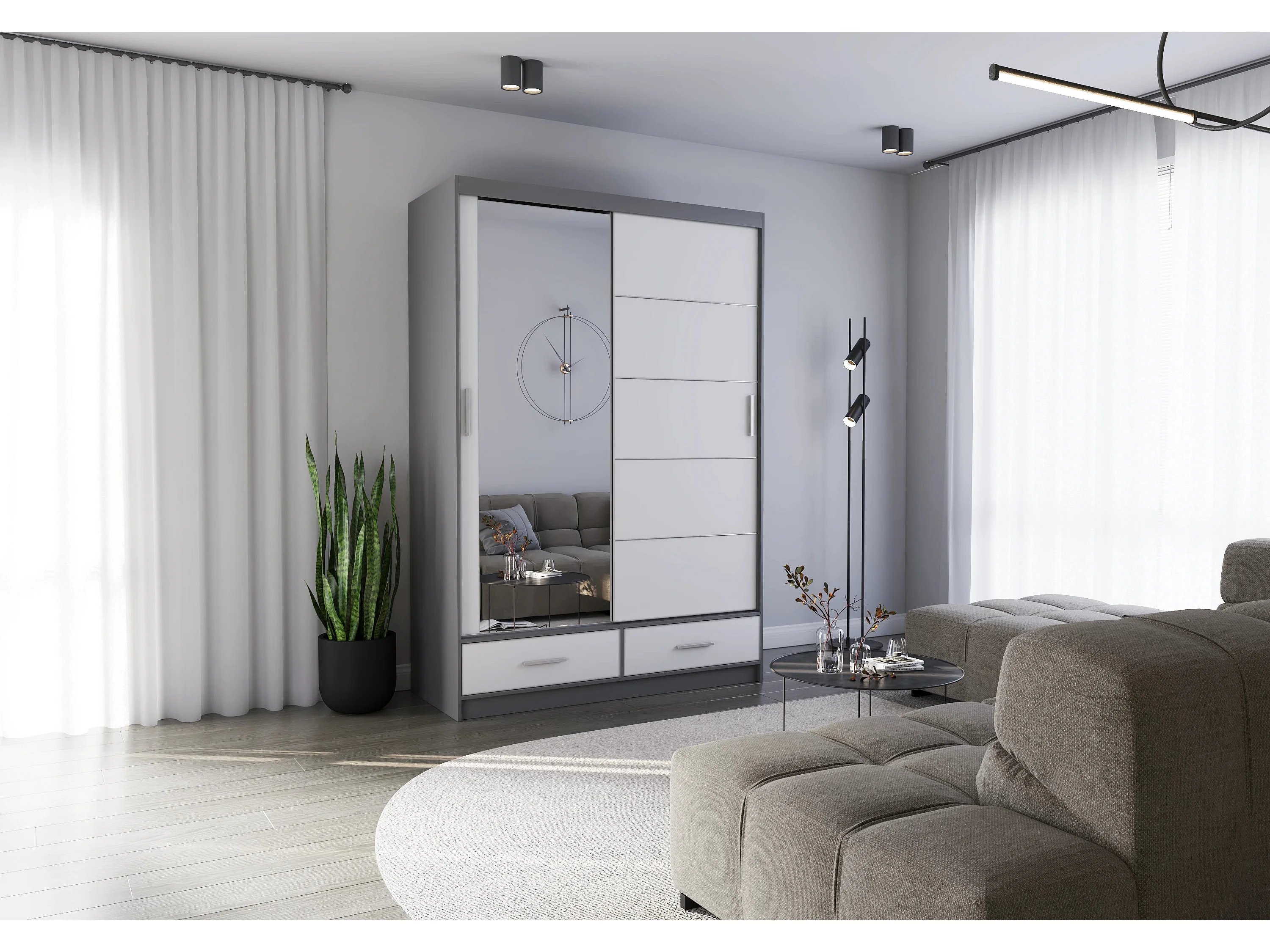 Armoire Silvana 150 cm avec miroir - Gris - Blanc