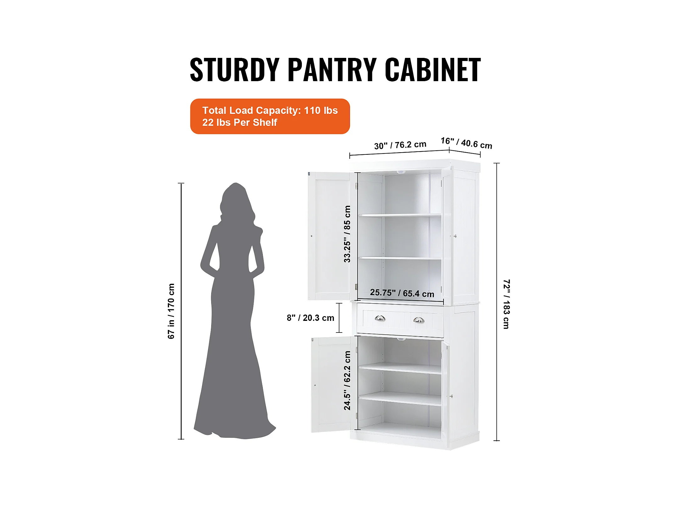 Armoire SucceBuy de Garde-Manger de Cuisine 183cm, 4 Portes, 3 Tablettes Réglables, Rangement, Conçue pour les Grandes Familles et les Restaurants