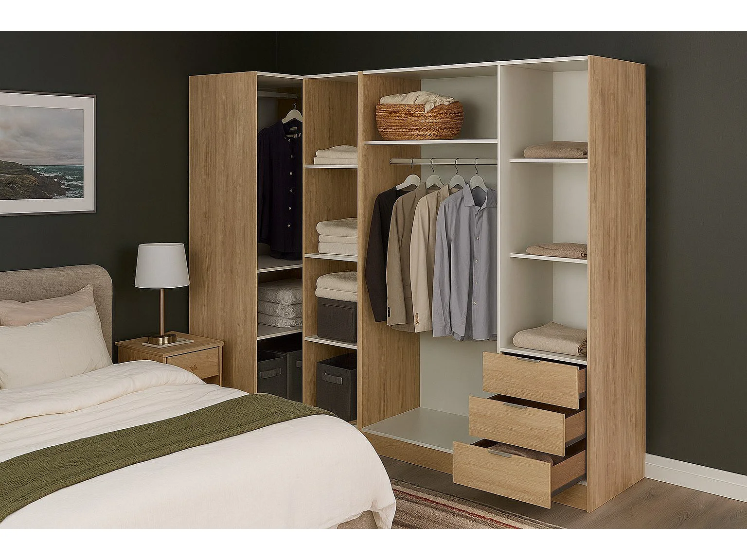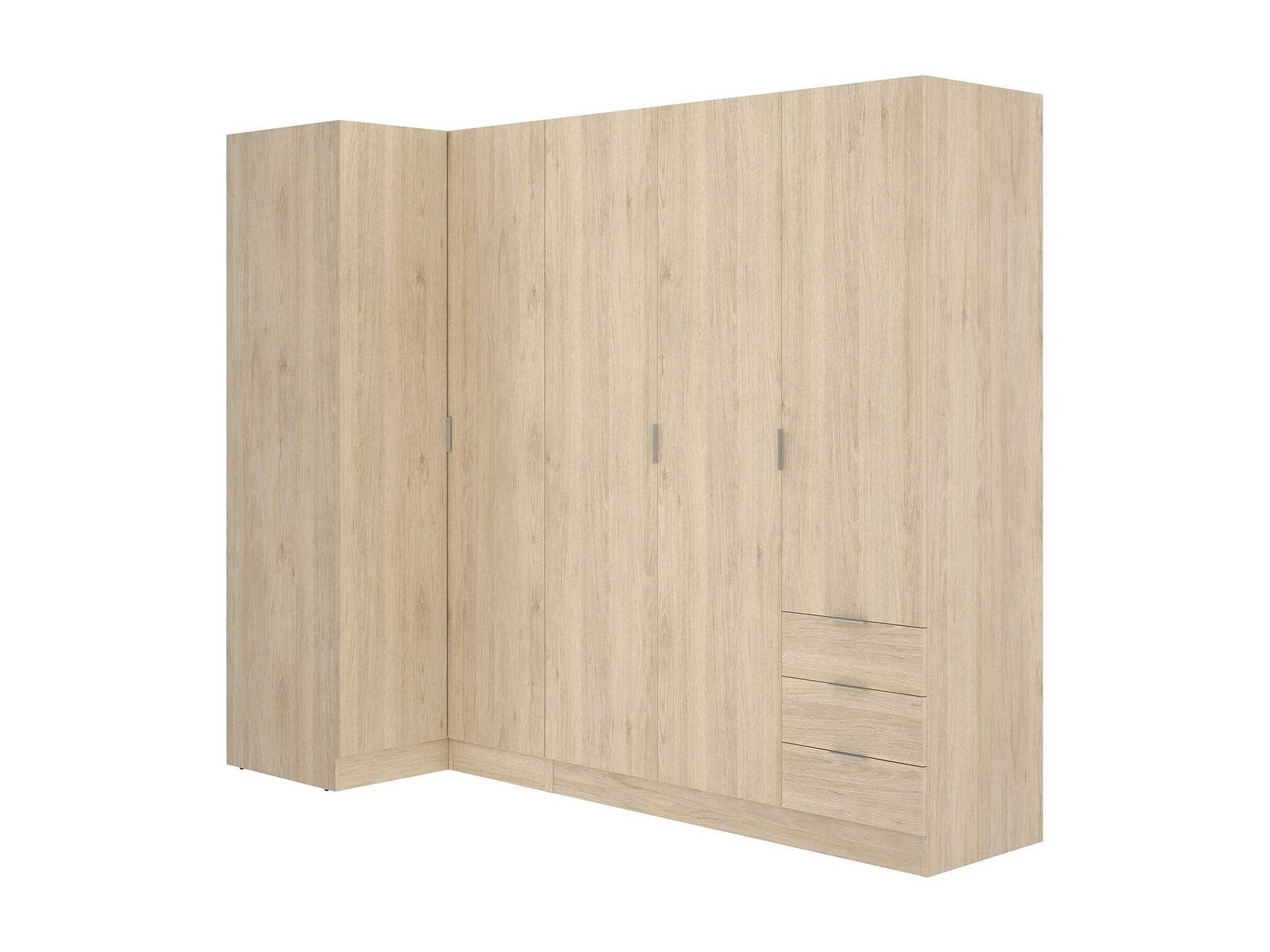 Armoire Dmezzan, Armoire d'angle pour chambre à coucher, Armoire d'angle avec 5 portes battantes, 214x91h184 cm, Chêne