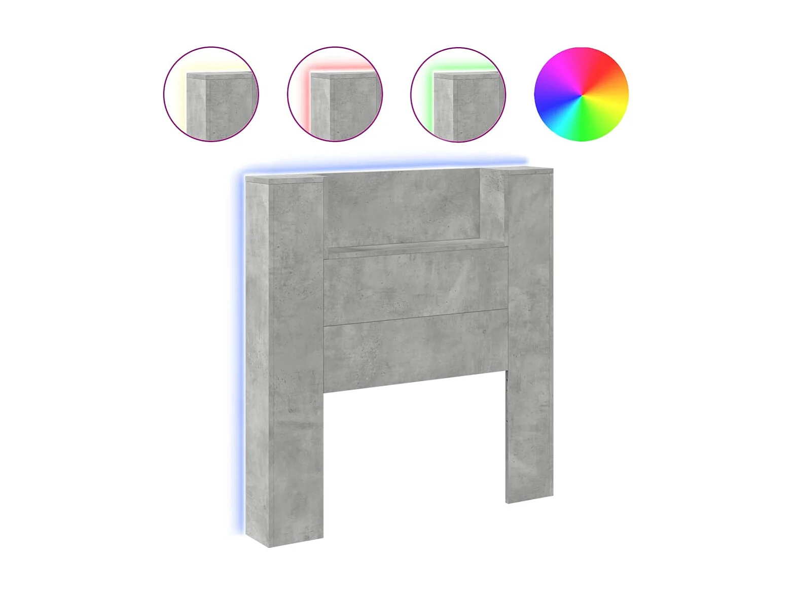 Armoire tête de lit avec LED gris béton 100x16,5x103,5 cm