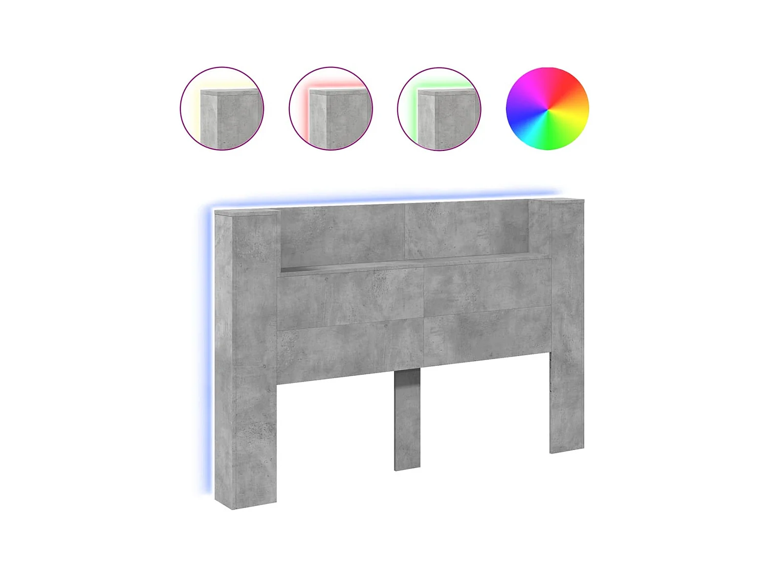 Armoire tête de lit avec LED gris béton 140x16,5x103,5 cm