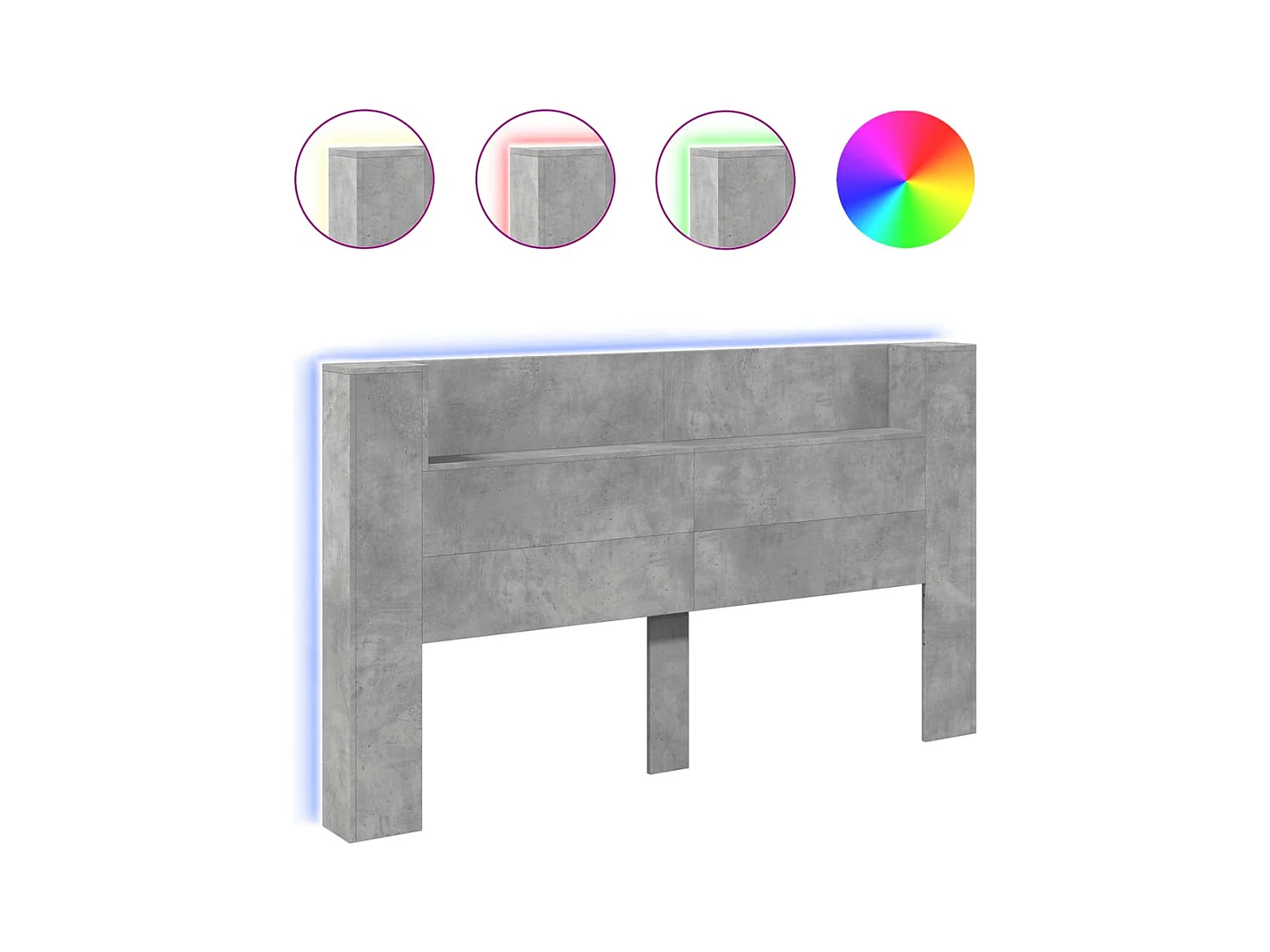 Armoire tête de lit avec LED gris béton 180x16,5x103,5 cm
