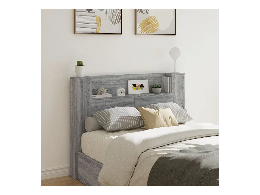 Armoire tête de lit avec LED sonoma gris 140x16,5x103,5 cm