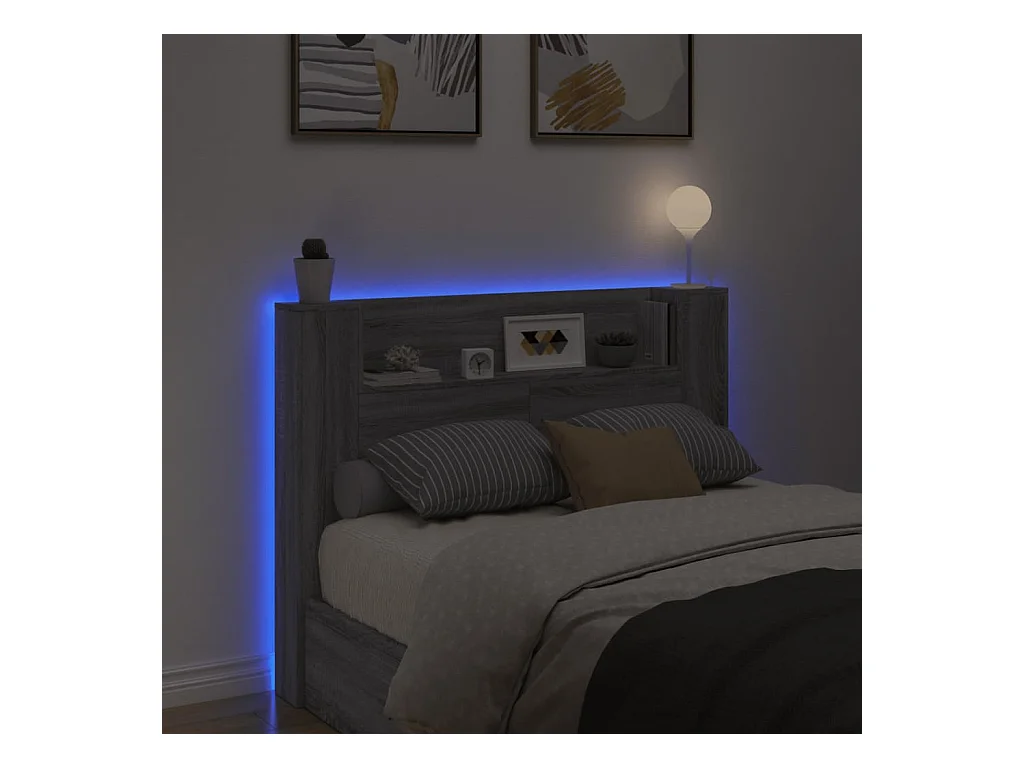 Armoire tête de lit avec LED sonoma gris 120x16,5x103,5 cm