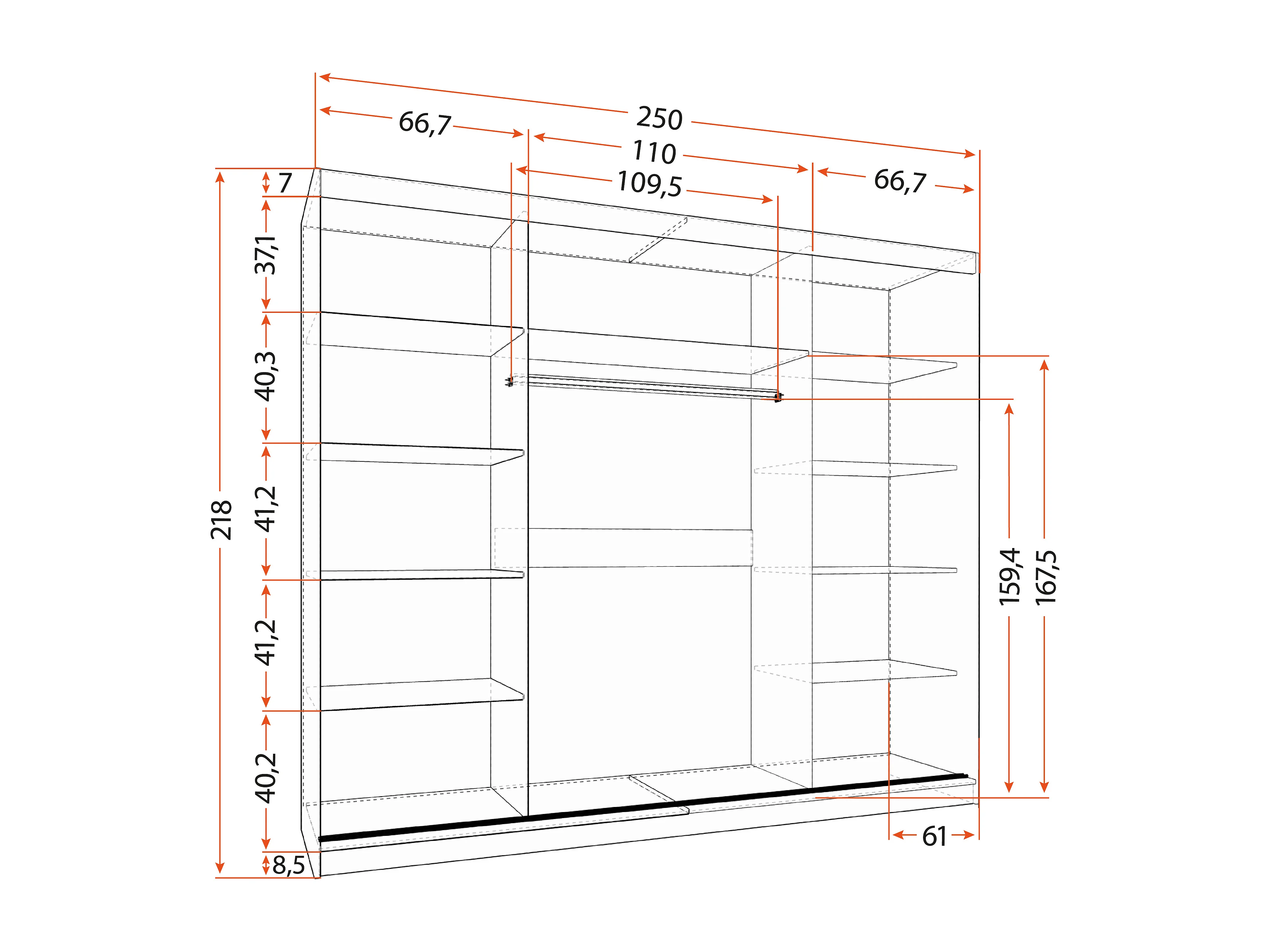 Armoire Thalia 250 cm - Blanc - Chêne