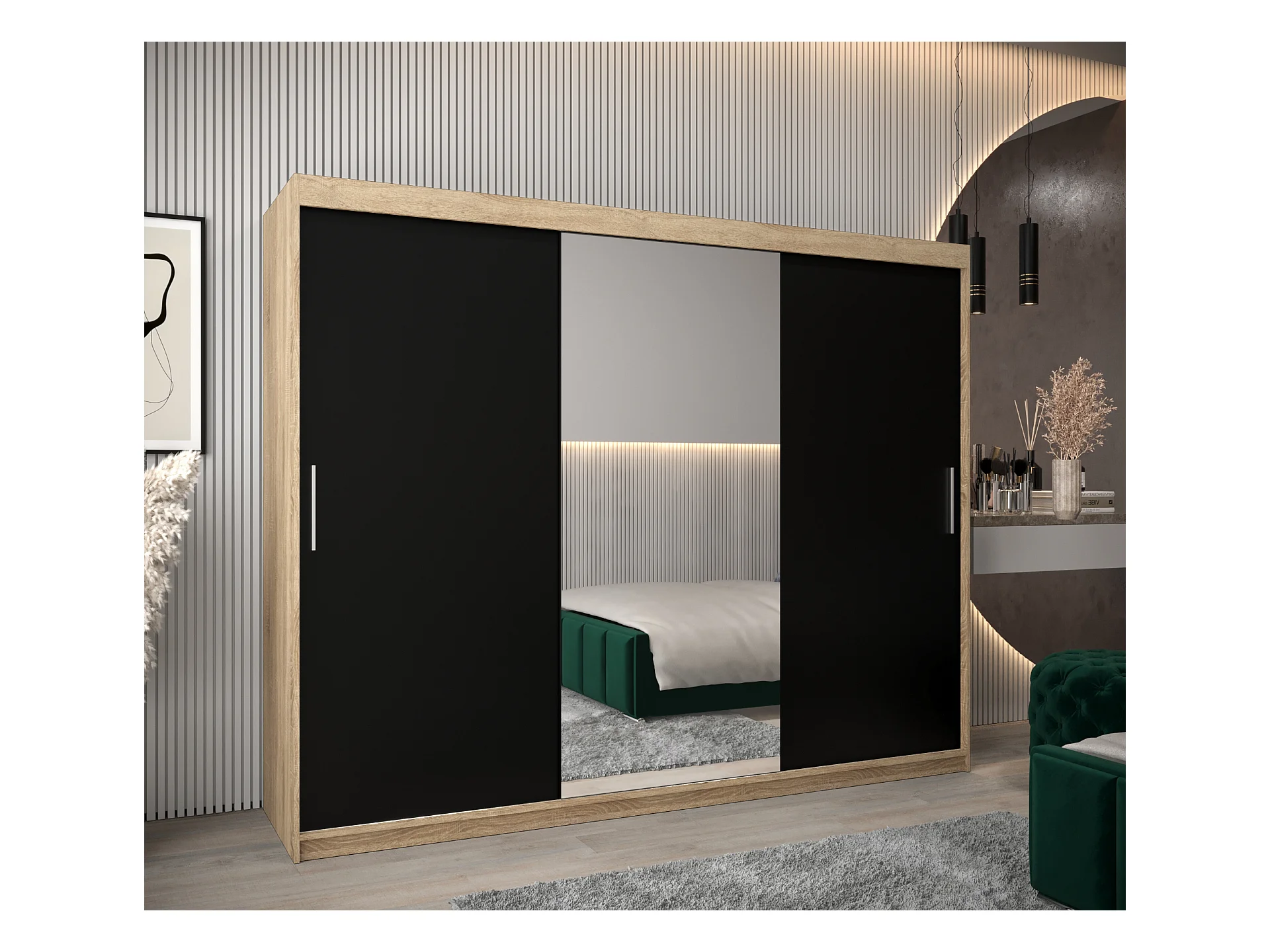 Armoire Tokyo 1 À Portes Coulissantes 200/250/62 3 Portes (Sonoma/Noir)