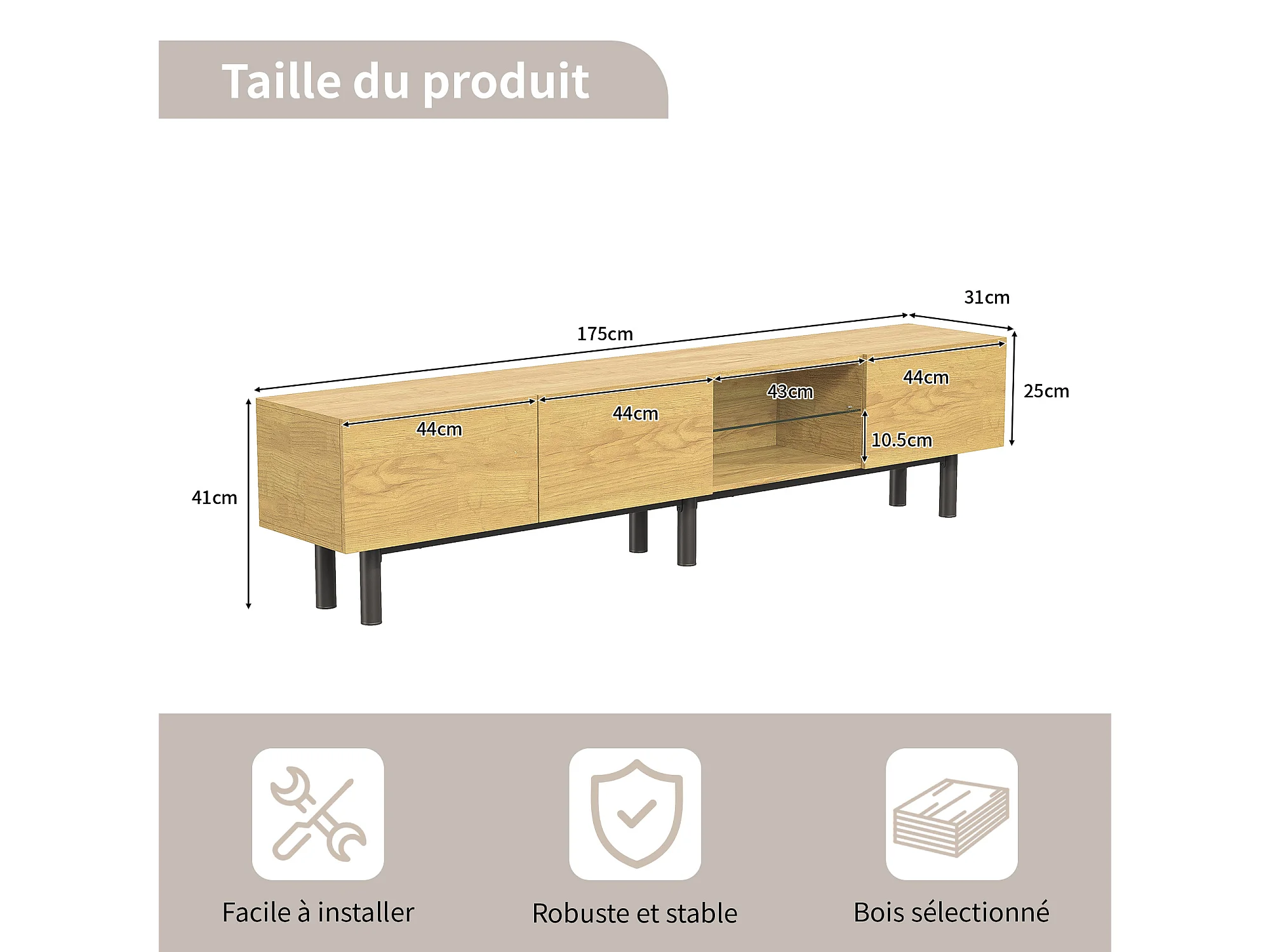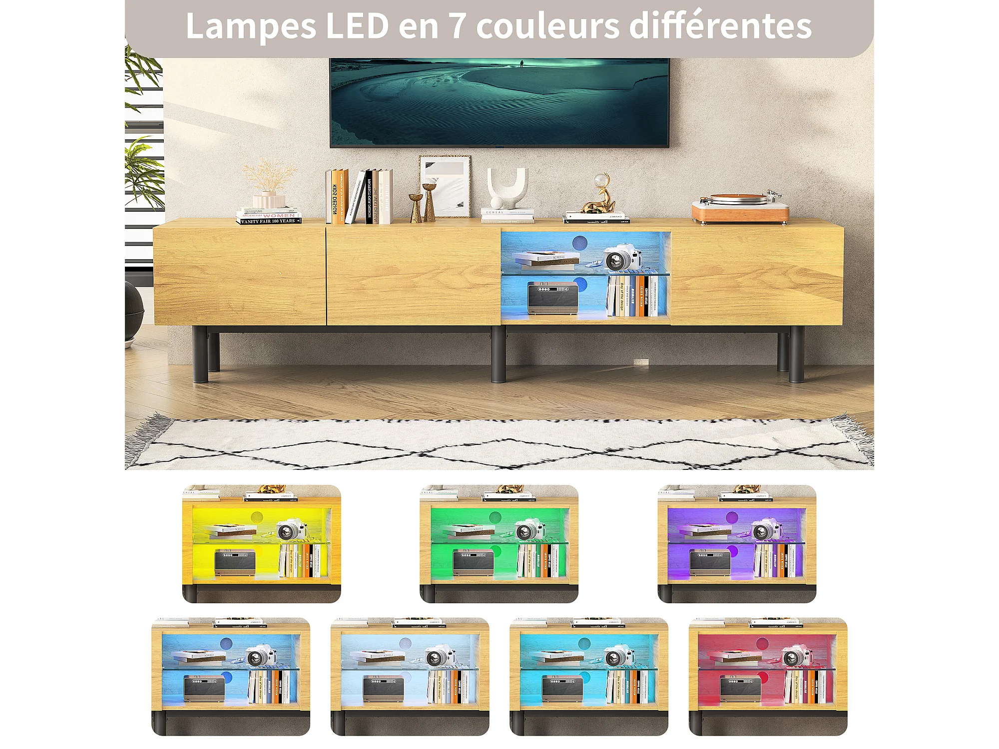 Armoire TV , Meuble TV Style Industriel 175cm avec LED , Etagères et Rangement , 3 Portes , bois