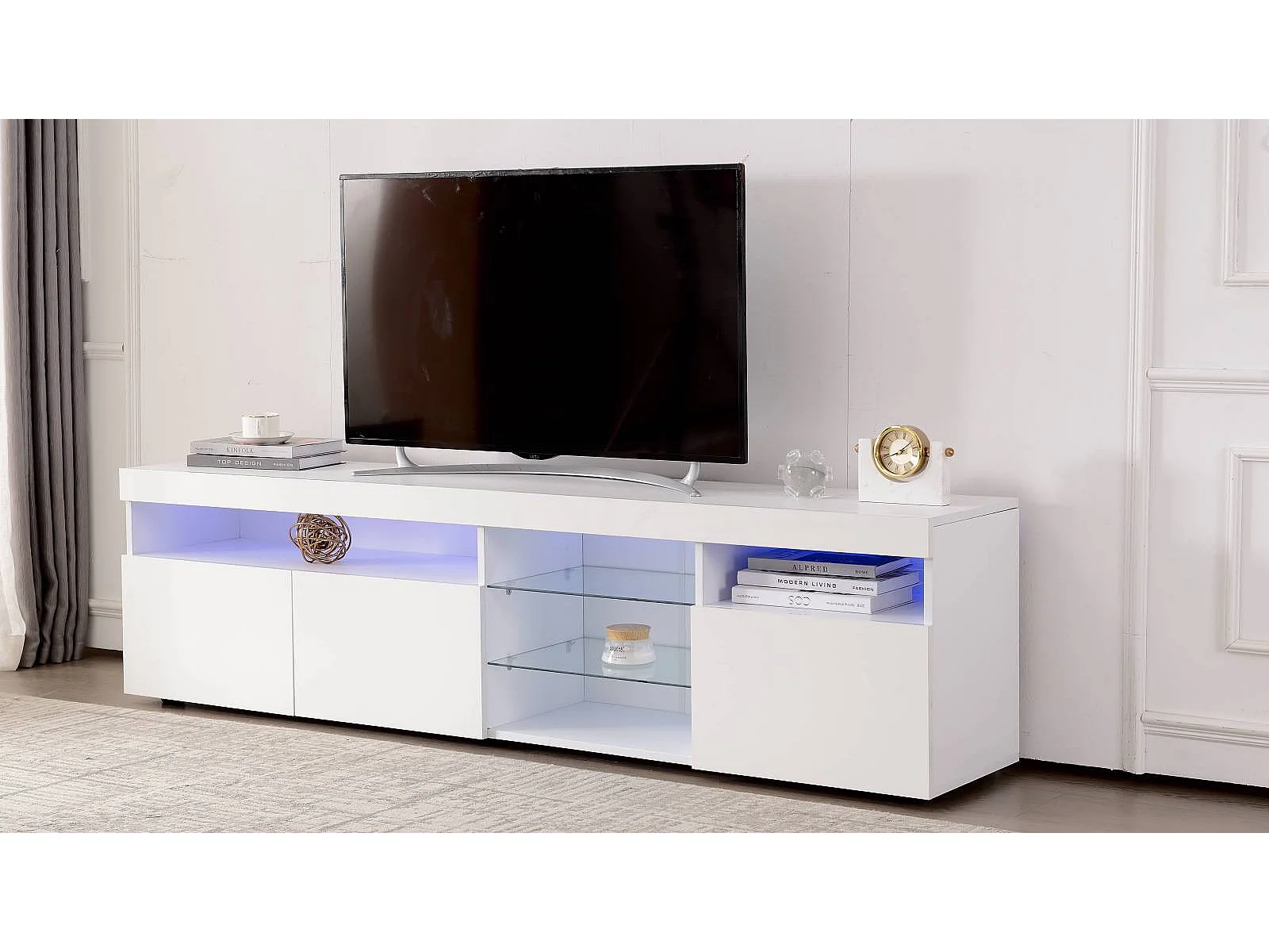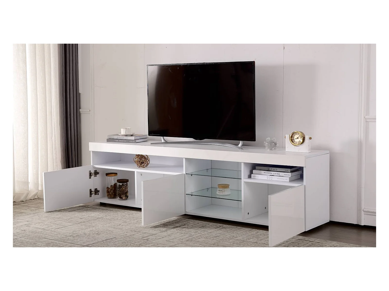 Armoire TV moderne blanc, panneau lumineux, éclairage LED variable, salon et salle à manger 180cm