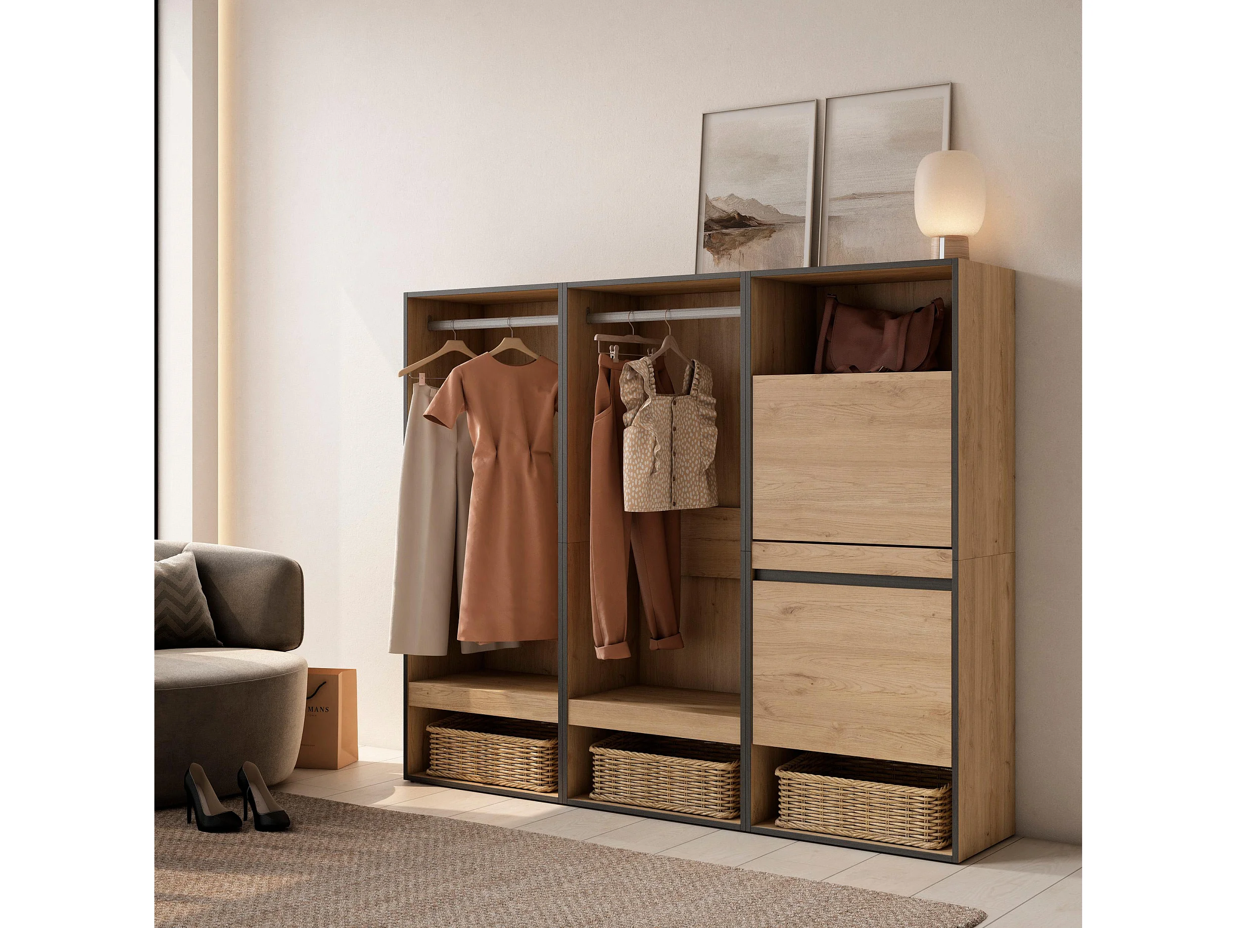 Armoire Vestiaire ouvert, 180x35x145 cm, Chambre à coucher, pièce, Meuble à Chaussures, Chêne