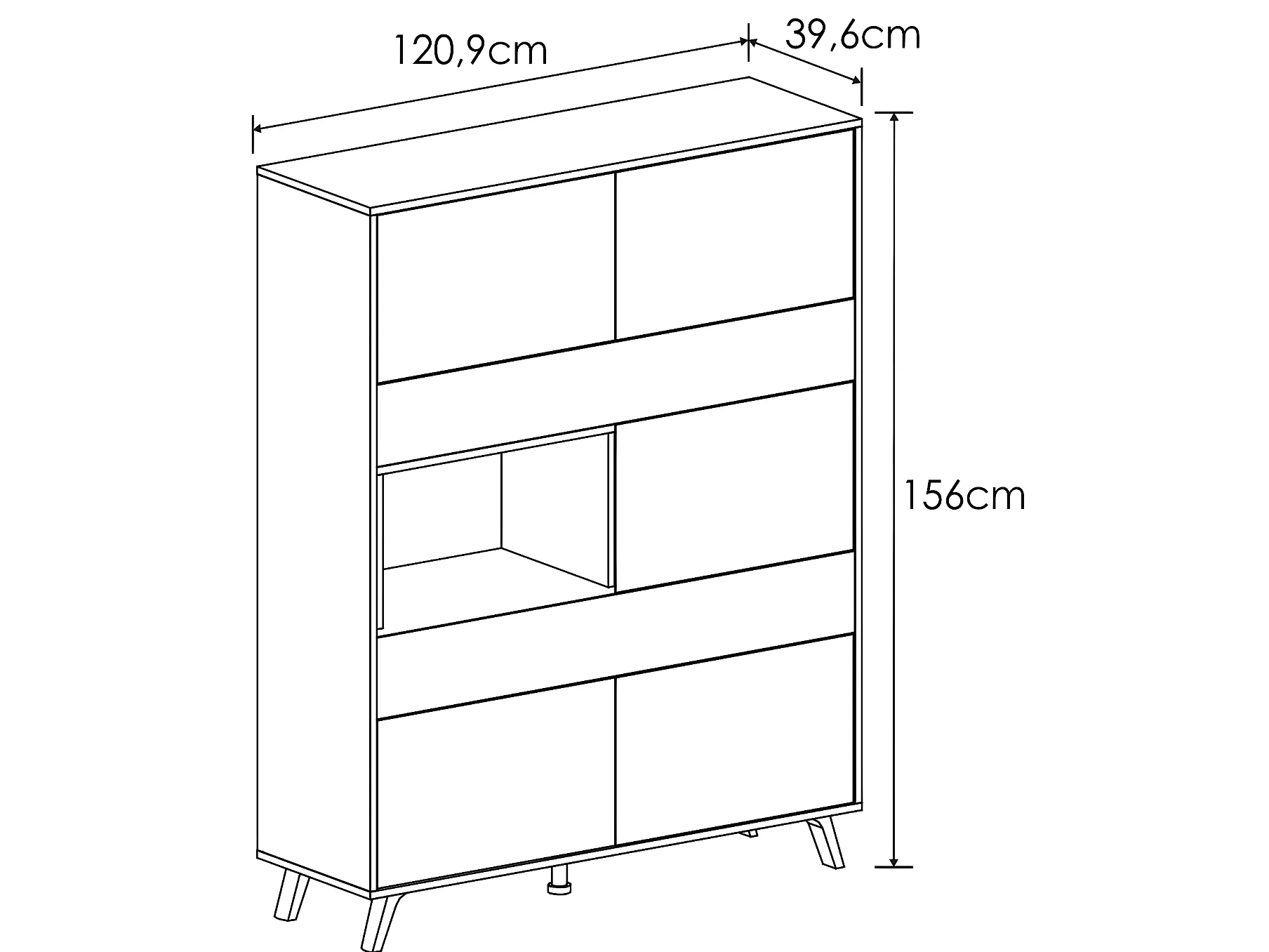 Armoire vitrine, buffet haut coloris blanc/chêne - Longueur 120.9 x Profondeur 39.6 x Hauteur 156 cm