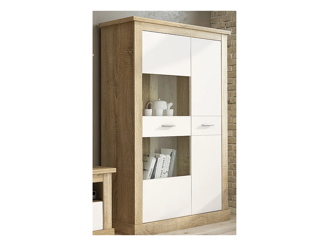 Armoire vitrine, buffet haut coloris Chêne cambrian,blanc - Longueur 125 x Profondeur 41,80 x Hauteur 174,70 cm