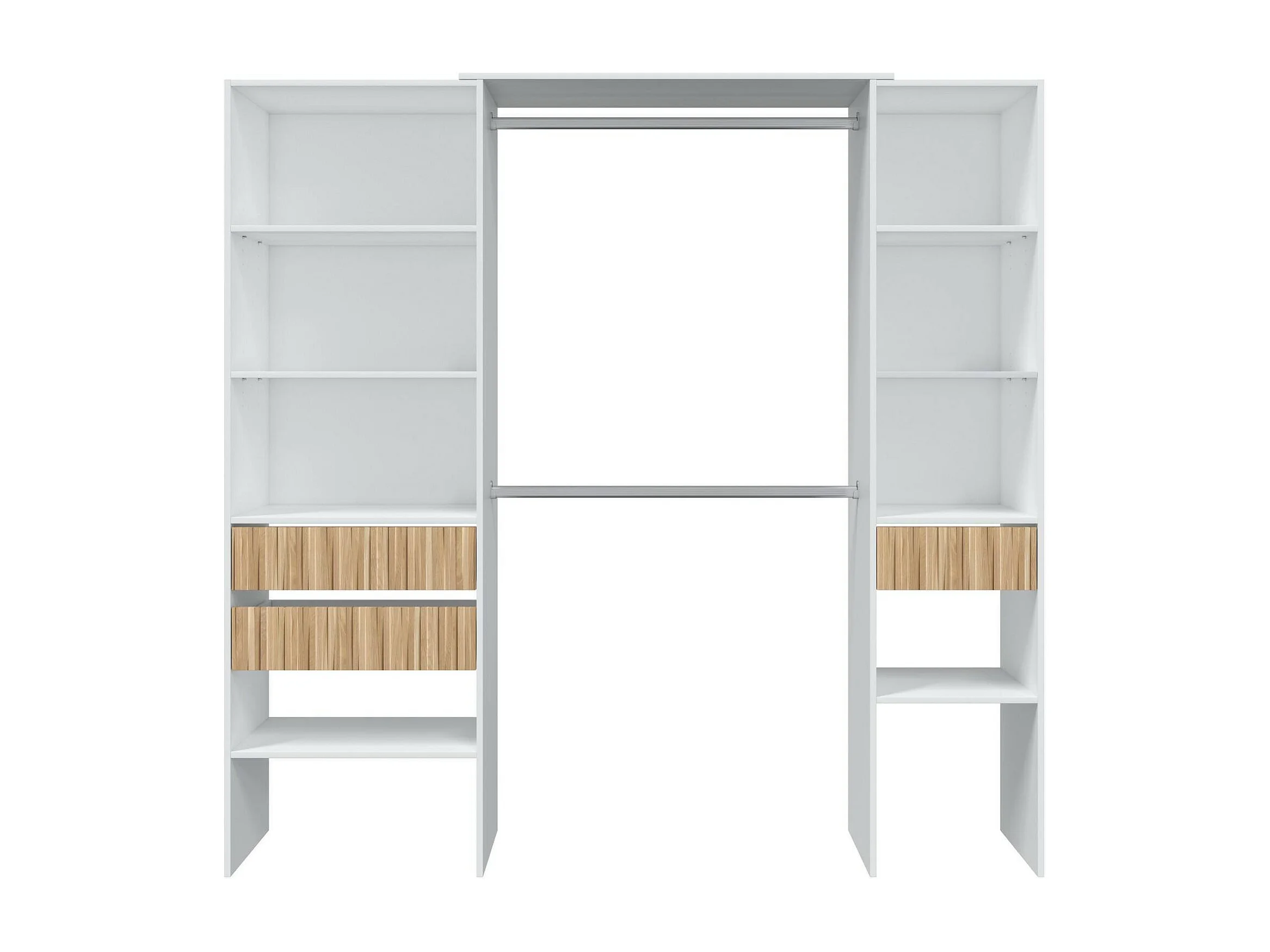 Armoire Worland, Meubles de chambre à coucher, Armoire à vêtements avec étagères et 3 tiroirs, 196x40h187 cm, Blanc et Chêne