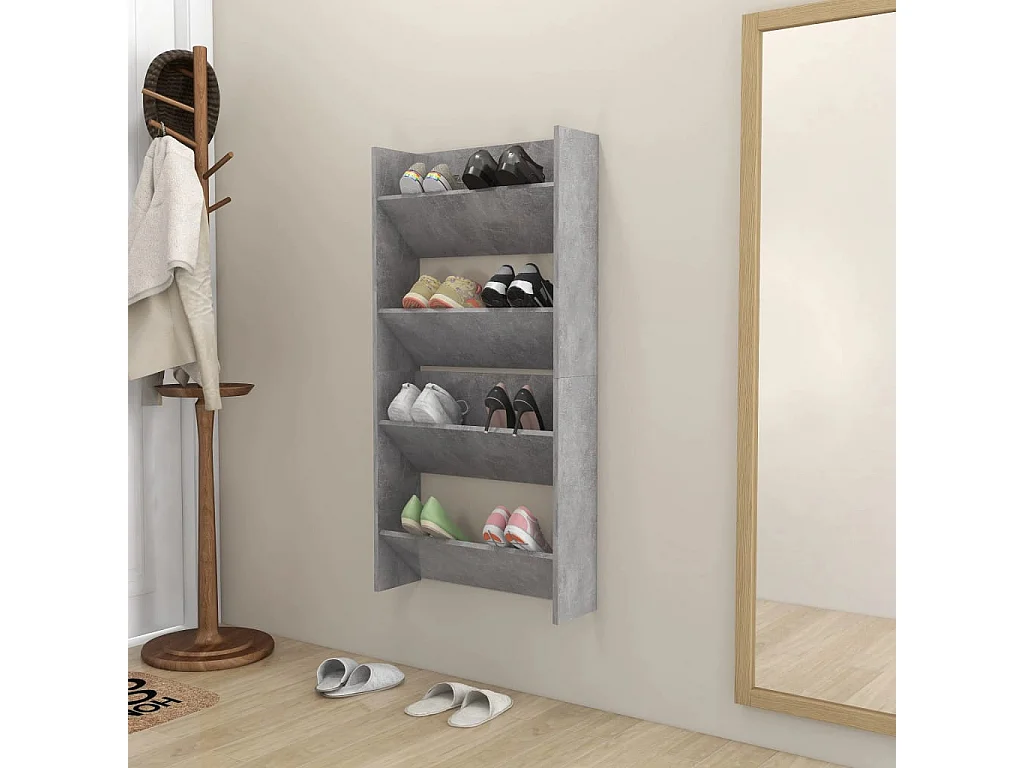 Armoire à chaussures murale Gris béton 60x18x60 cm Aggloméré
