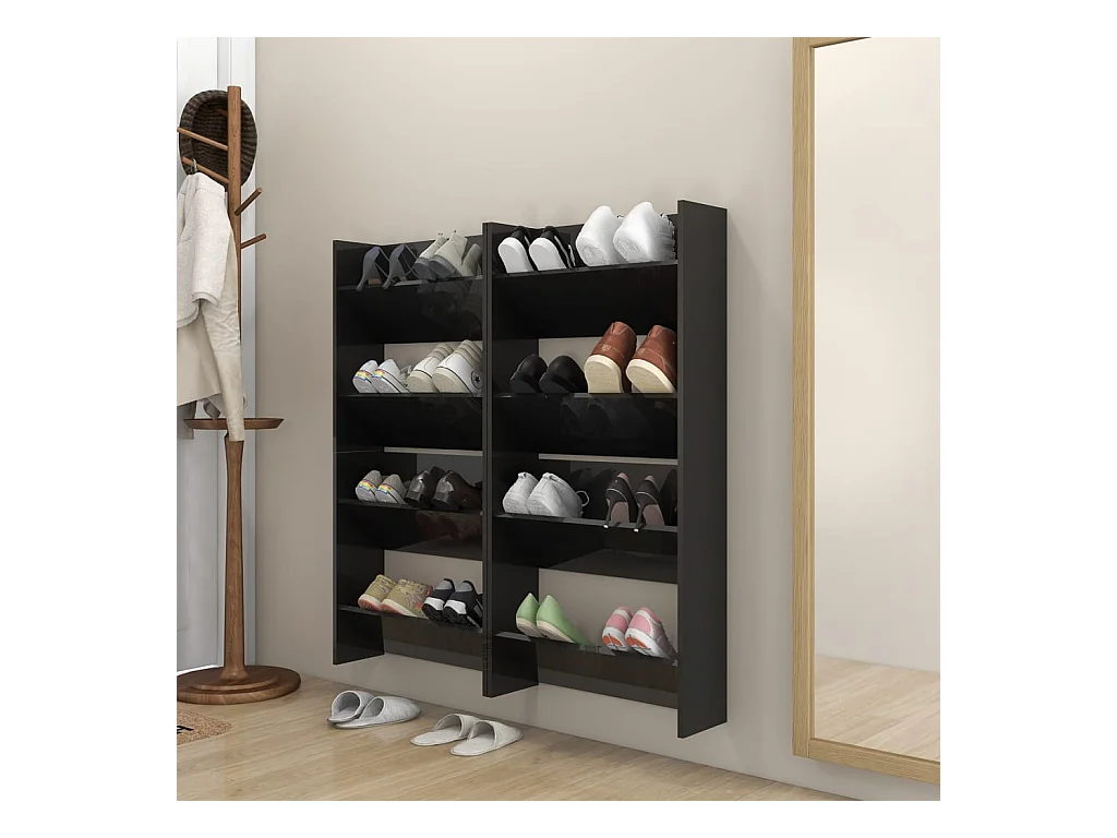 Armoires à chaussures murales 2 pcs noir brillant 60x18x60 cm