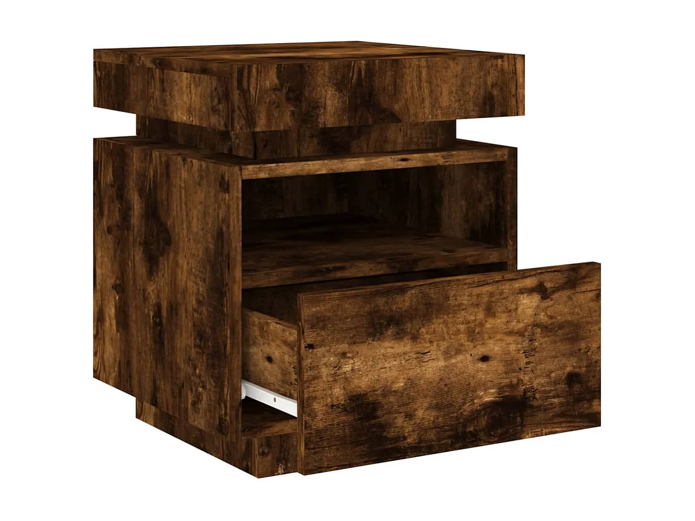 Table de chevet avec lumières LED chêne fumé 40x39x37