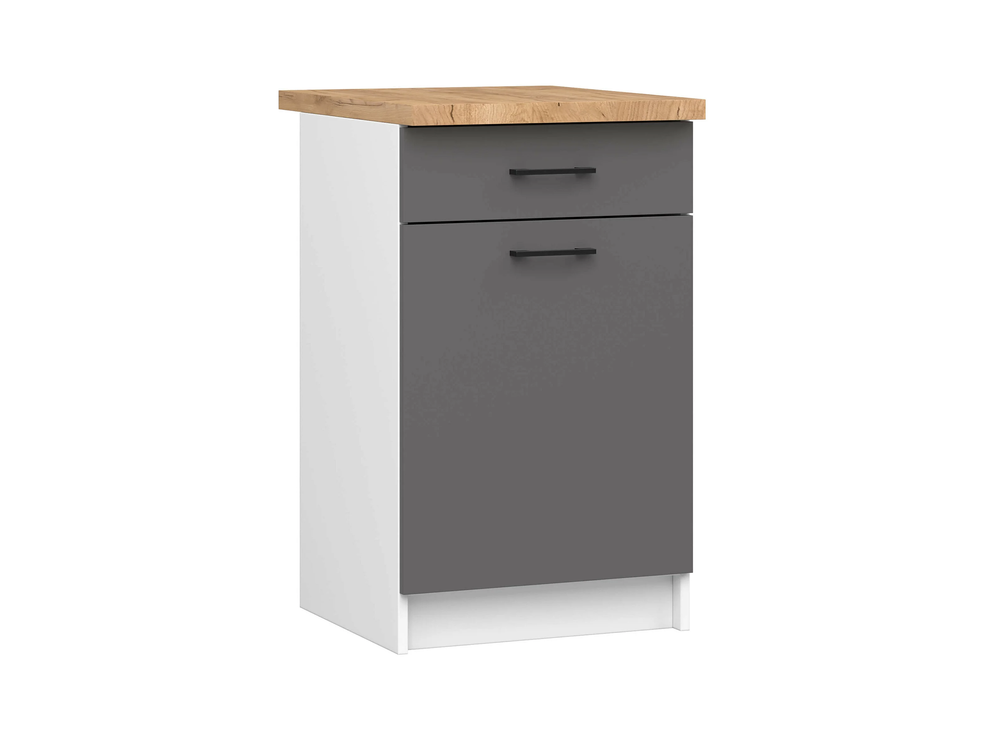 Armoires de cuisine basse AKORD S50 OLIWIA Blanc 50 cm 1 porte 1 tiroir façade Gris Graphite 2 étagères 50x46x85 cm