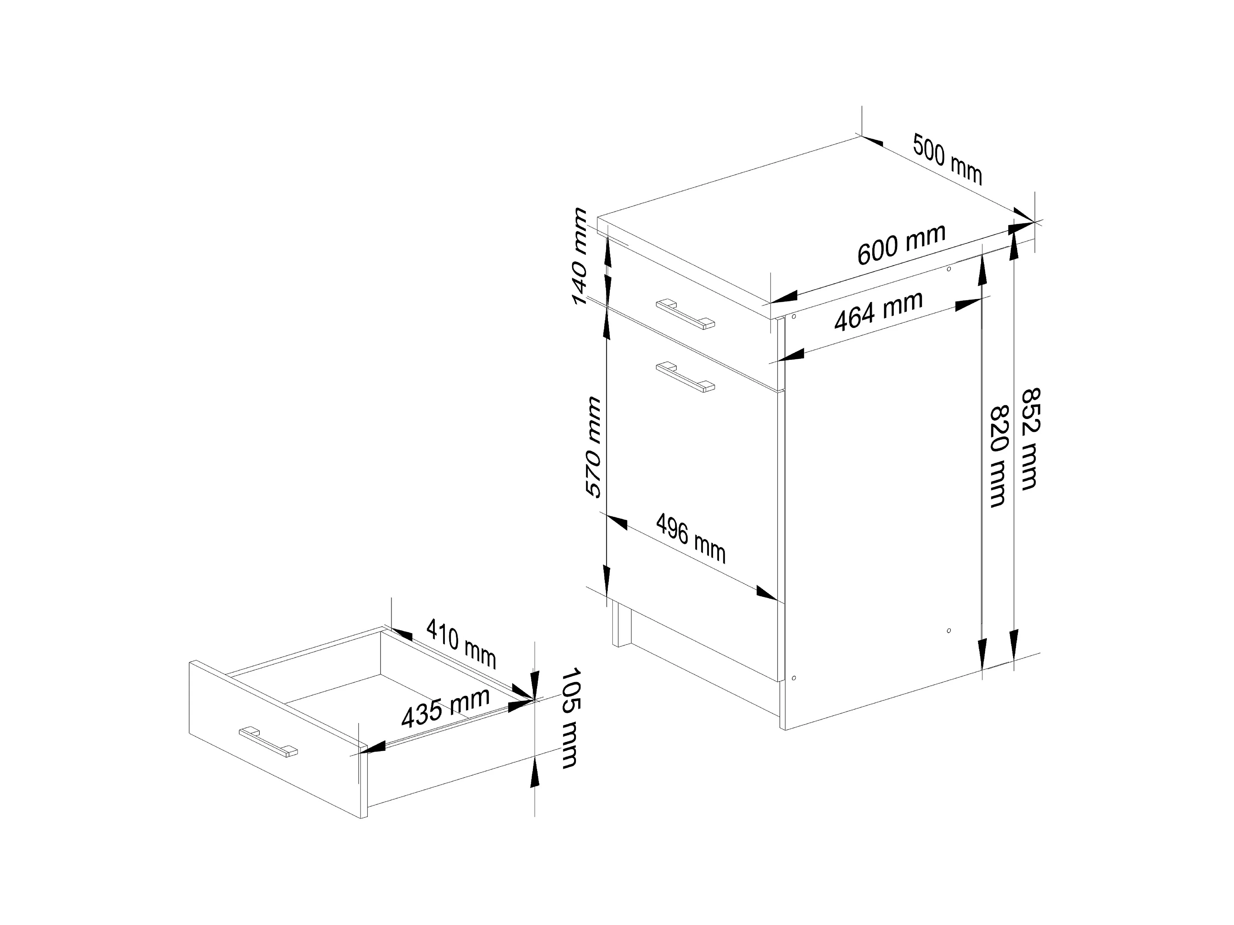 Armoires de cuisine basse AKORD S60 OLIWIA Blanc 60 cm 3 tiroirs façade Béton 60x46x85 cm