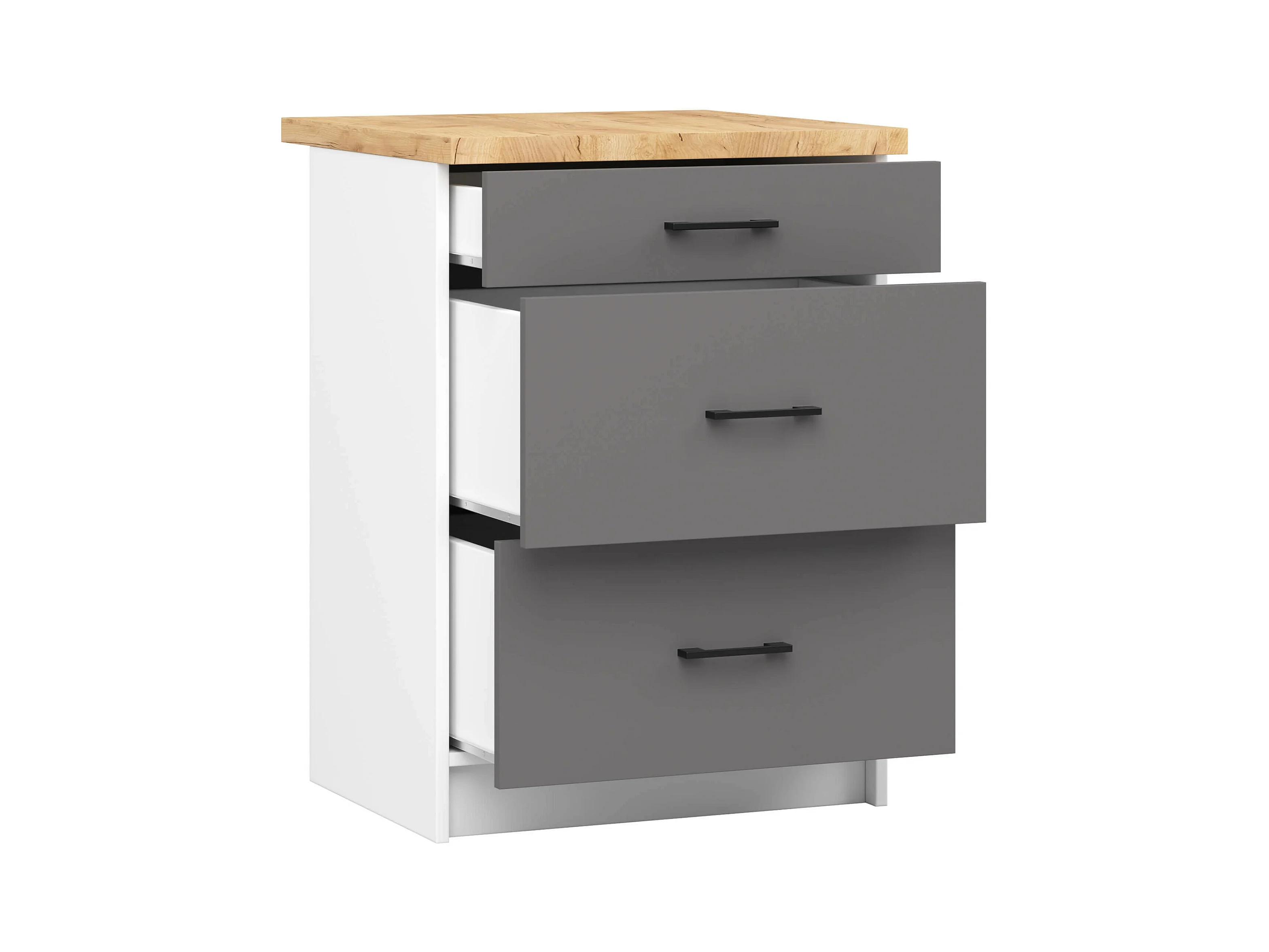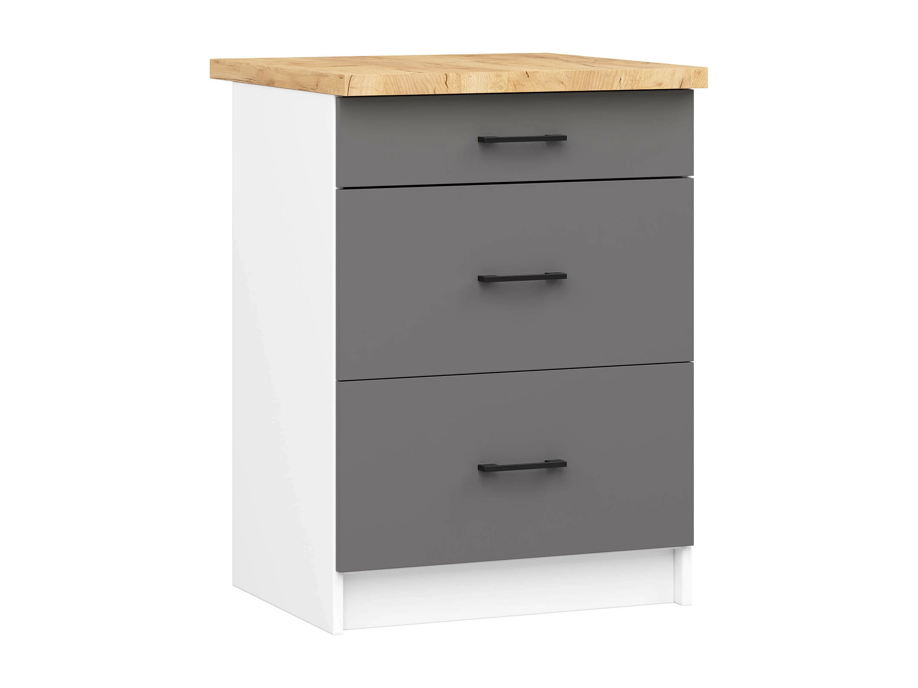 Armoires de cuisine basse AKORD S60 OLIWIA Blanc 60 cm 3 tiroirs façade Gris Graphite 60x46x85 cm