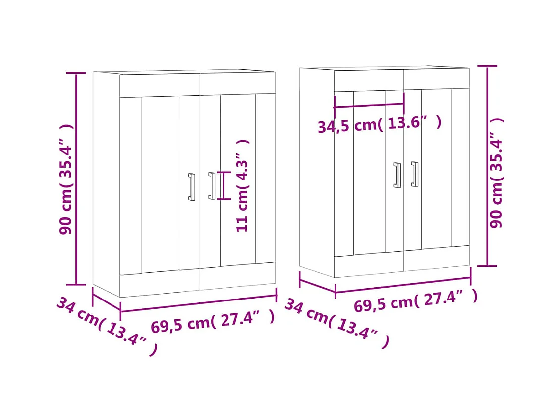 Armoires murales 2 pcs chêne sonoma 69,5x34x90 cm