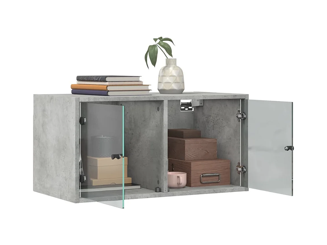 Armoire murale avec portes en verre gris béton 68,5x37x35