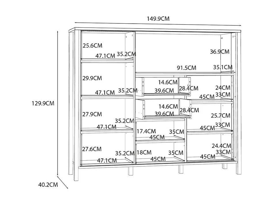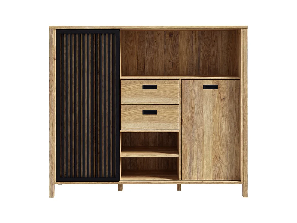 Armoirette 150 cm décor chêne porte coulissante ajourée noire - SELENA