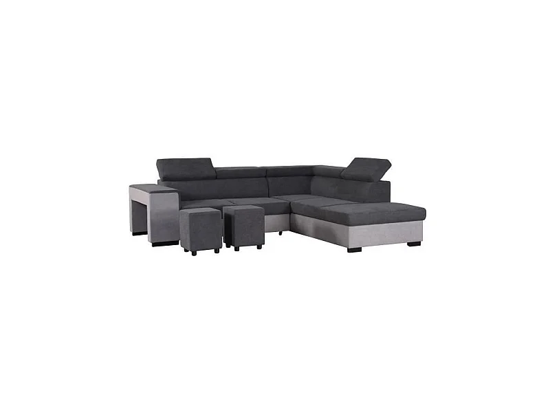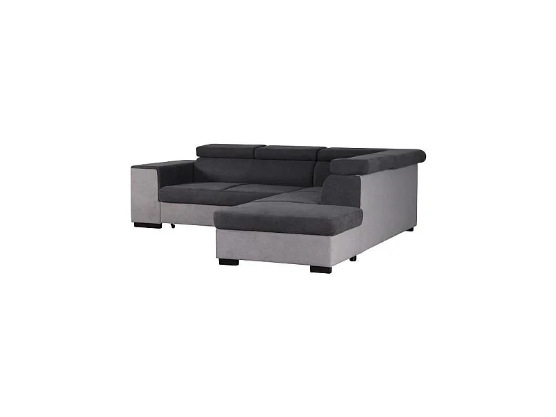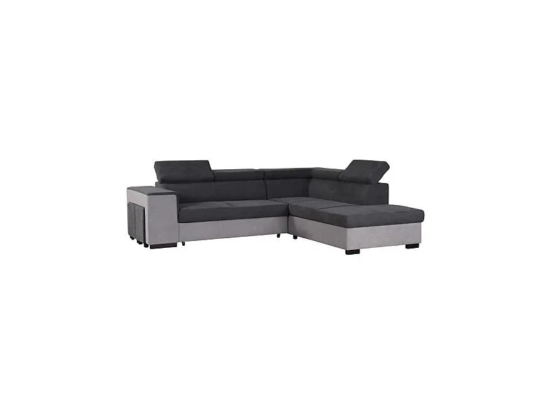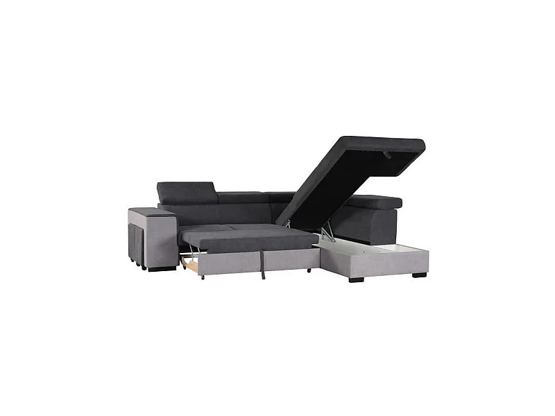 ARMSTRONG Canape dangle droit convertible + coffre 5 places - Tissu gris clair et gris fonce - L 271 x P 220 x H 77 cm