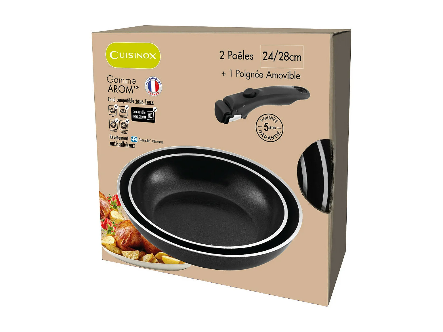 Arom - Série 2 poêles 22 et 26 cm avec poignée amovible