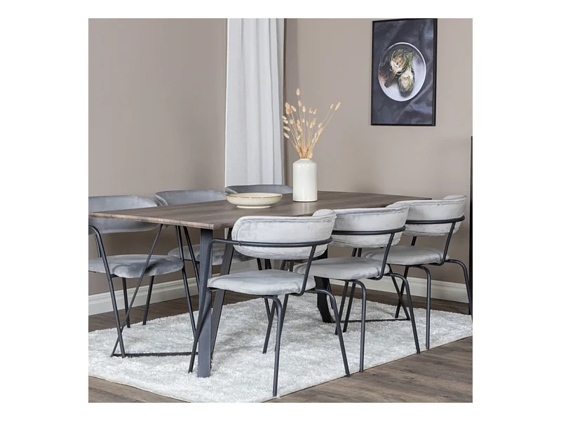 Arrow chaise de salle à manger avec accoudoirs, velours gris.