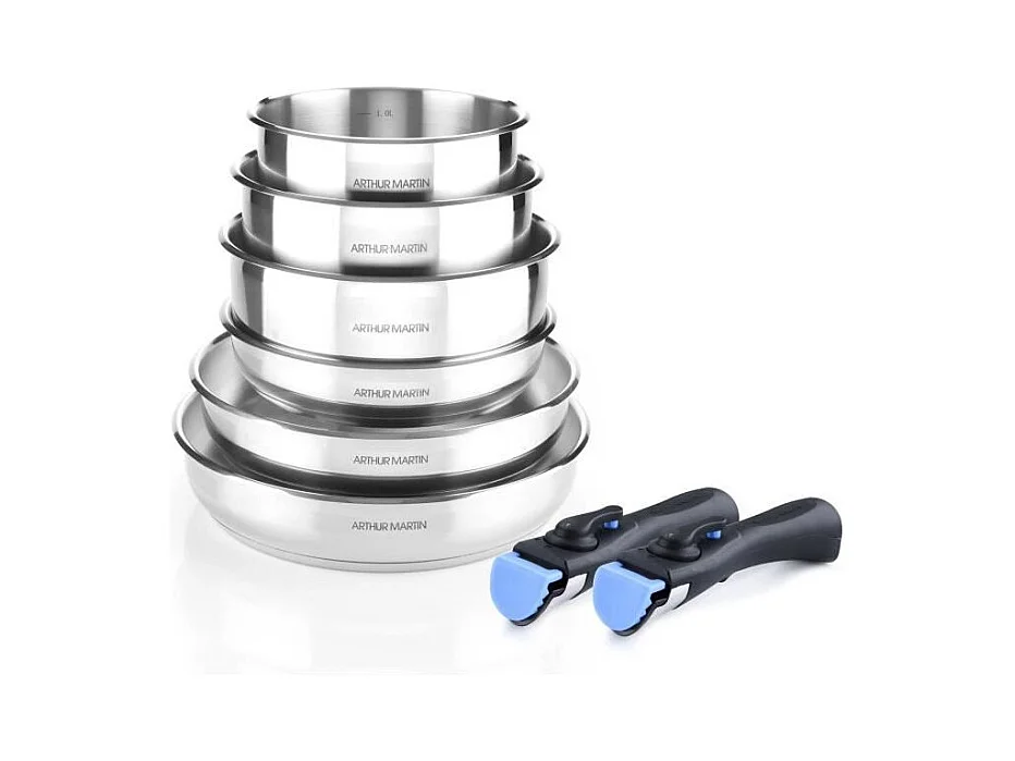 Batterie de cuisine induction - Arthur Martin - AM1275 - Acier inoxydable - 15 pieces - Poignée amovible - Tous feux dont induc