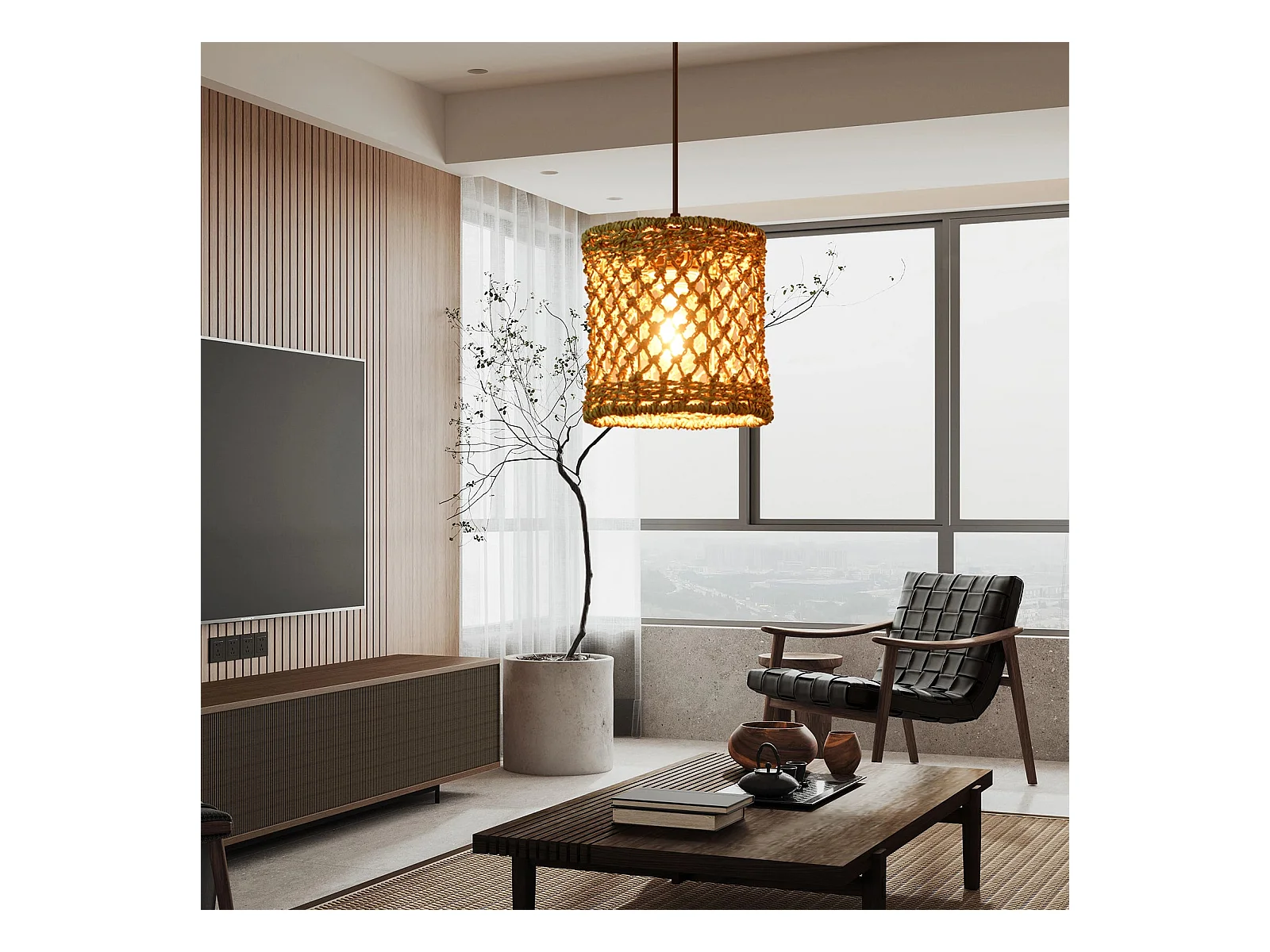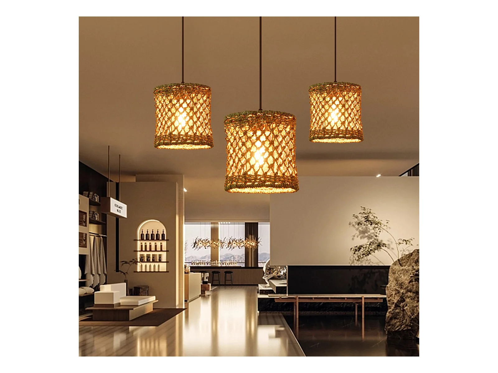 Suspension élégante en bambou tressé pour intérieur