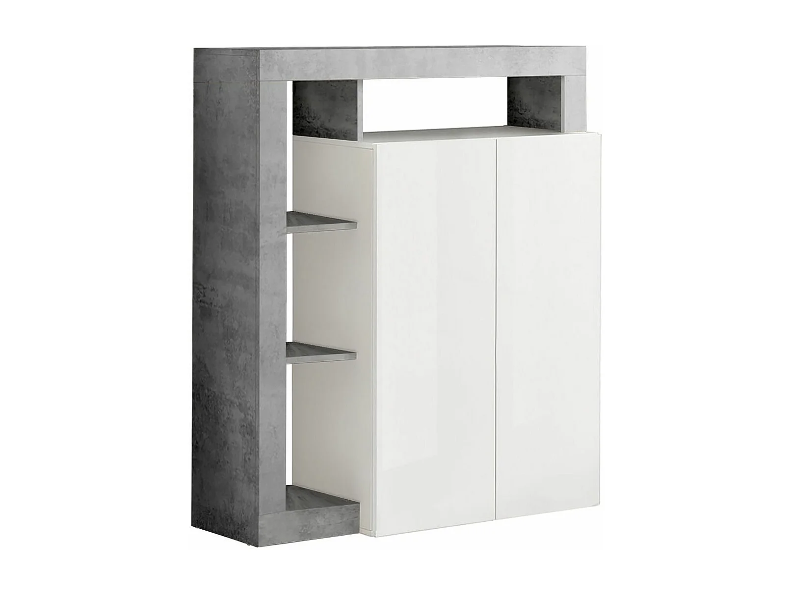 ARTURO - Meuble Bar 2 Portes Blanc Laqué Encadrement Niches Aspect Cimento