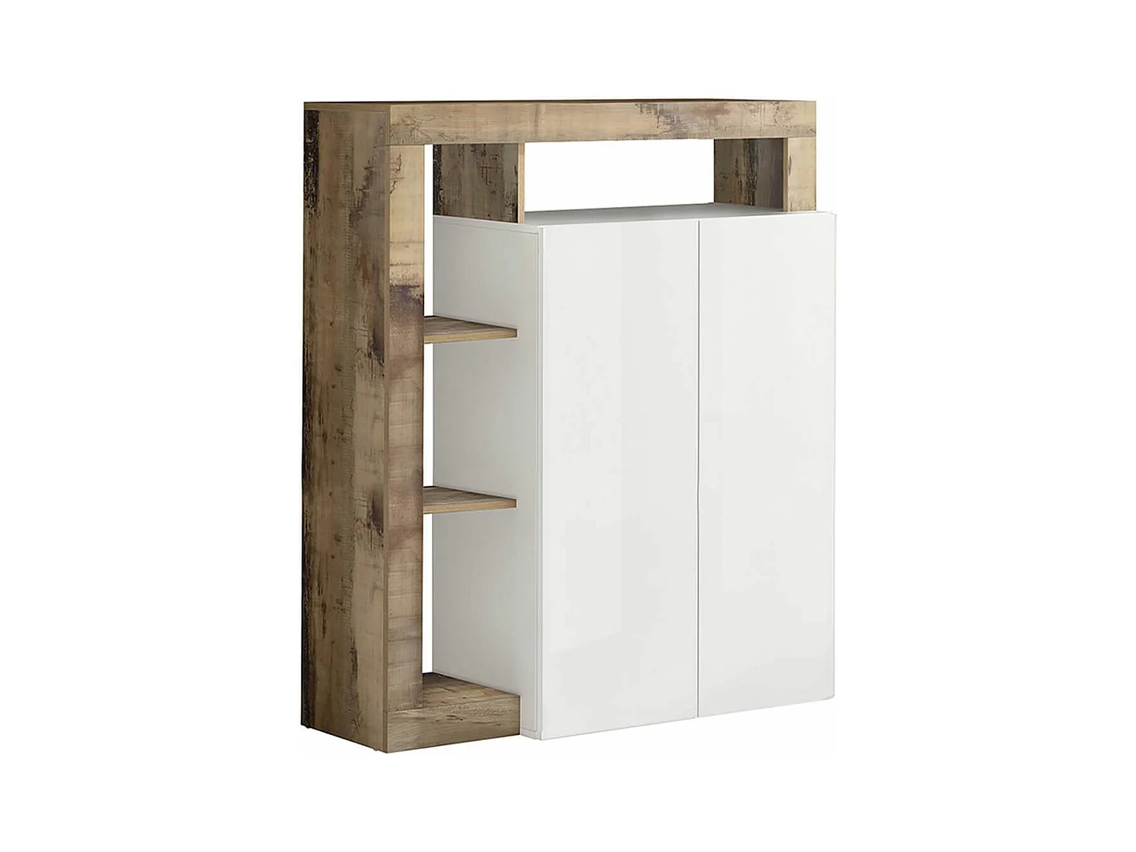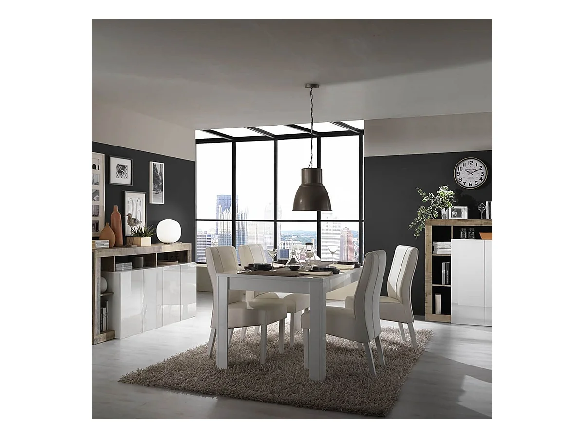 ARTURO - Séjour Complet Table + Buffet 4P Blanc Laqué Niches Aspect Bois Antik