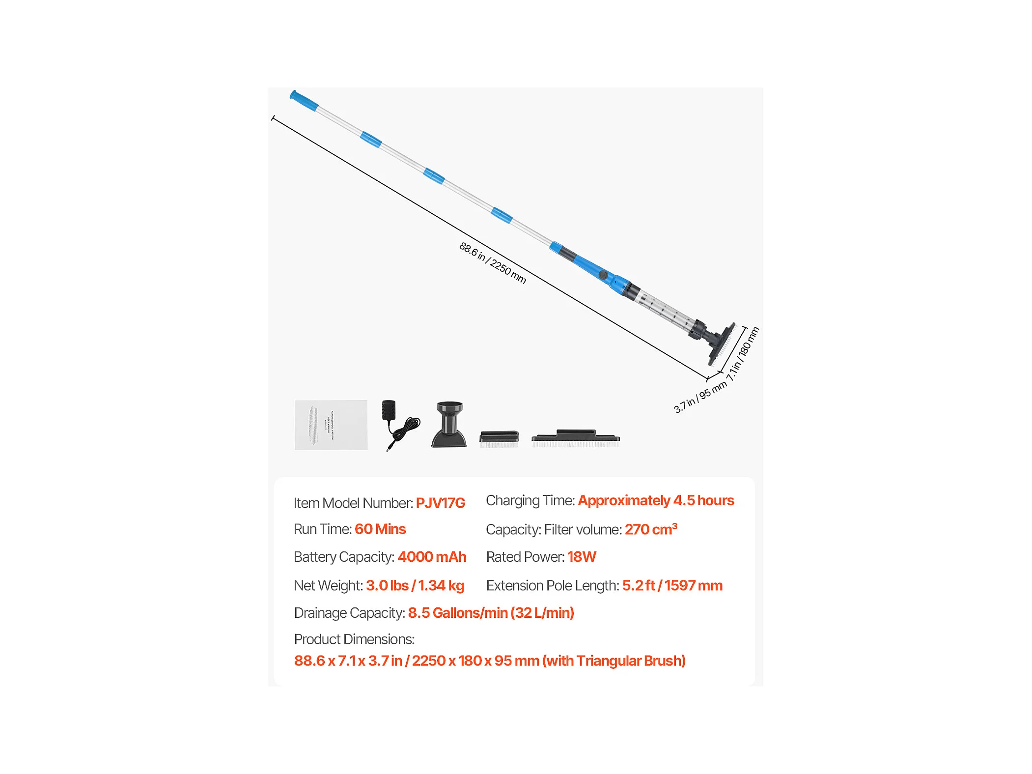 Aspirateur de Piscine, SucceBuy Aspirateur de Piscine Rechargeable 32 L/min avec Autonomie d'une Heure et Rallonge