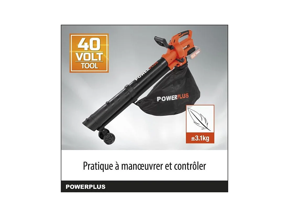 Aspirateur souffleur broyeur a batterie 40V POWDPG75270 - moteur brushless - Livré sans batterie ni chargeur