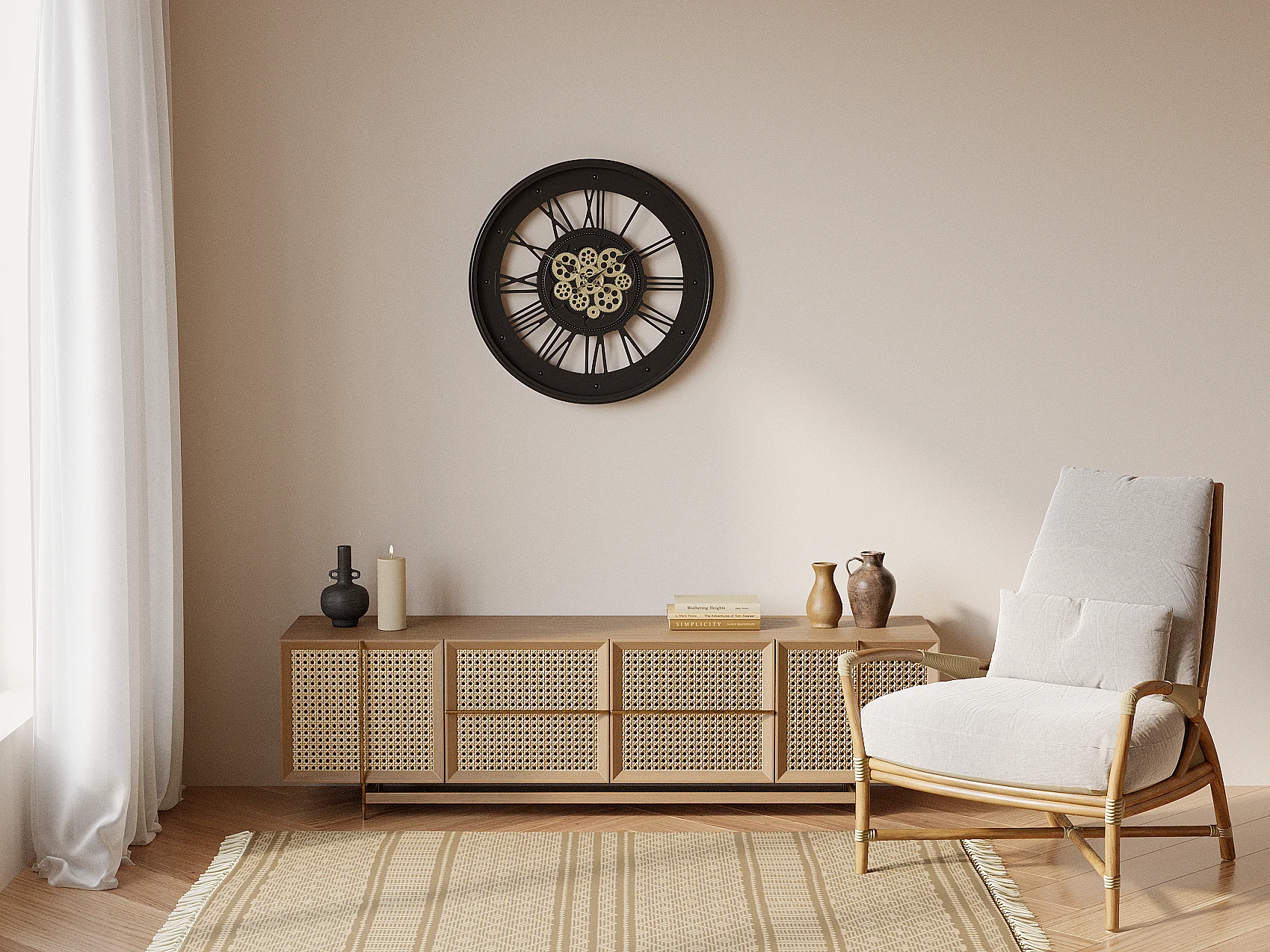 Horloge Murale Cannage "Ribby" 60cm Noir & Crème