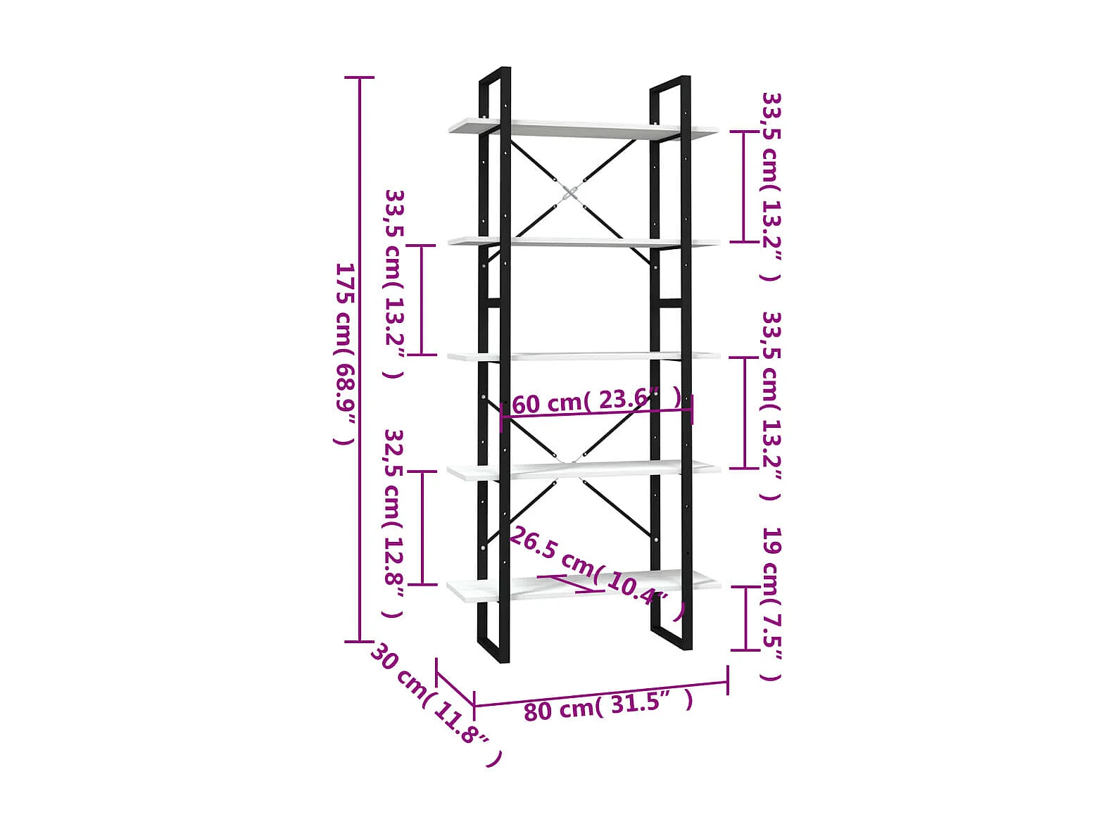 Aubagne Bibliothèque à 5 niveaux Blanc 80x30x175 cm Bois de pin
