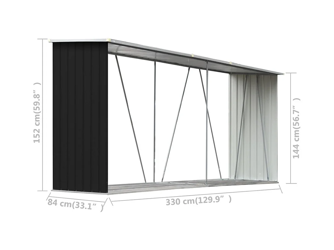 Aulnay-sous-Bois Abri de stockage à bois Acier galvanisé 330x84x152cm Anthracite
