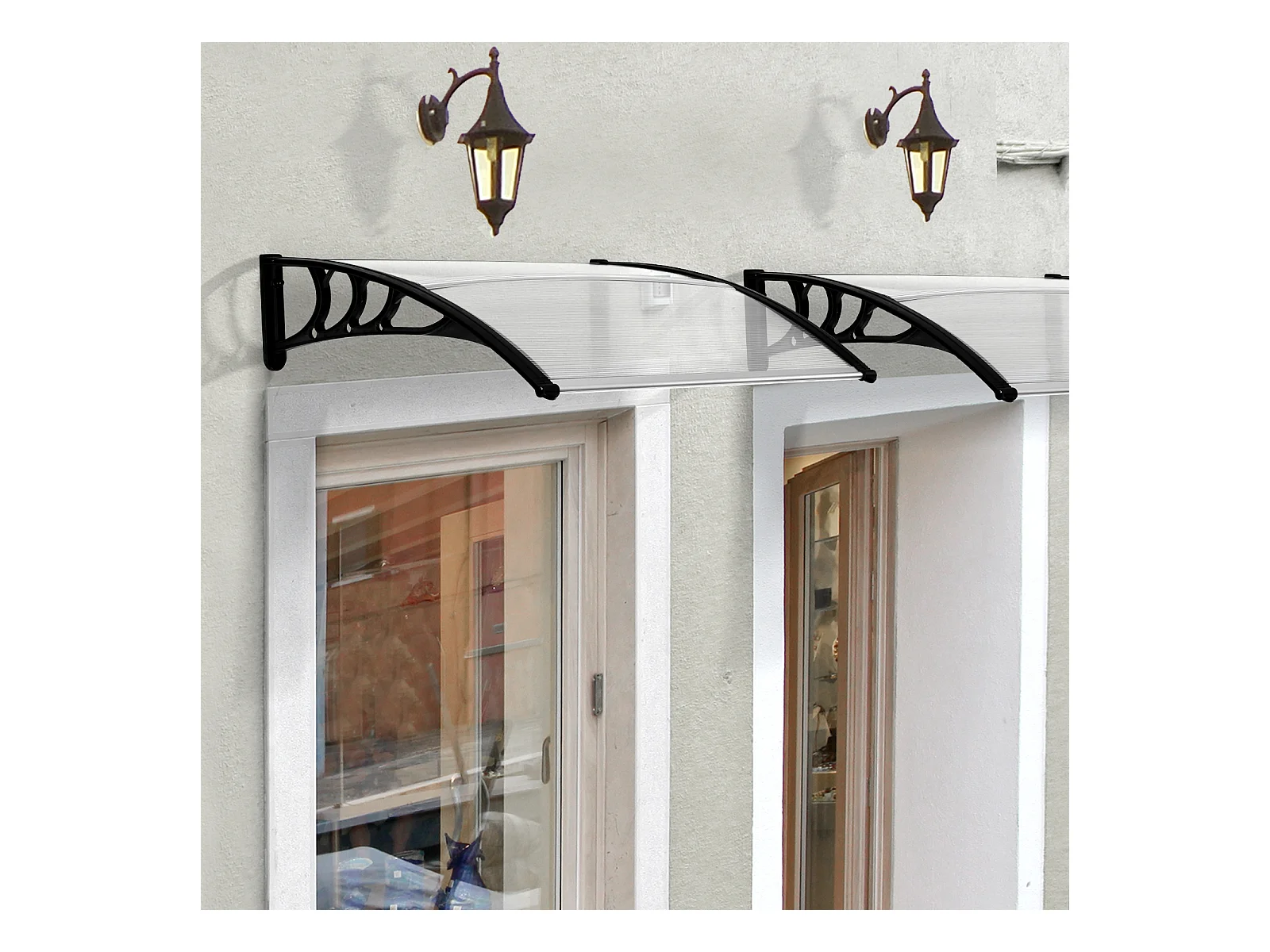 Auvent marquise de porte design voûté arrondi dim. 195L x 80l x 23H cm polycarbonate plastique noir
