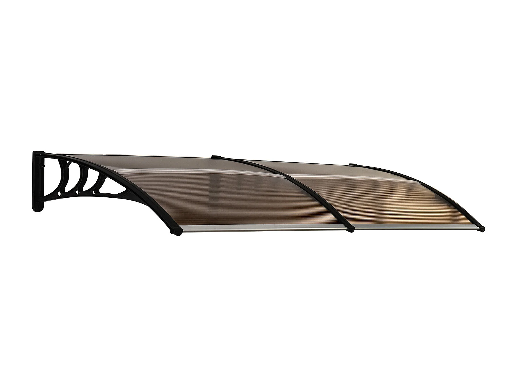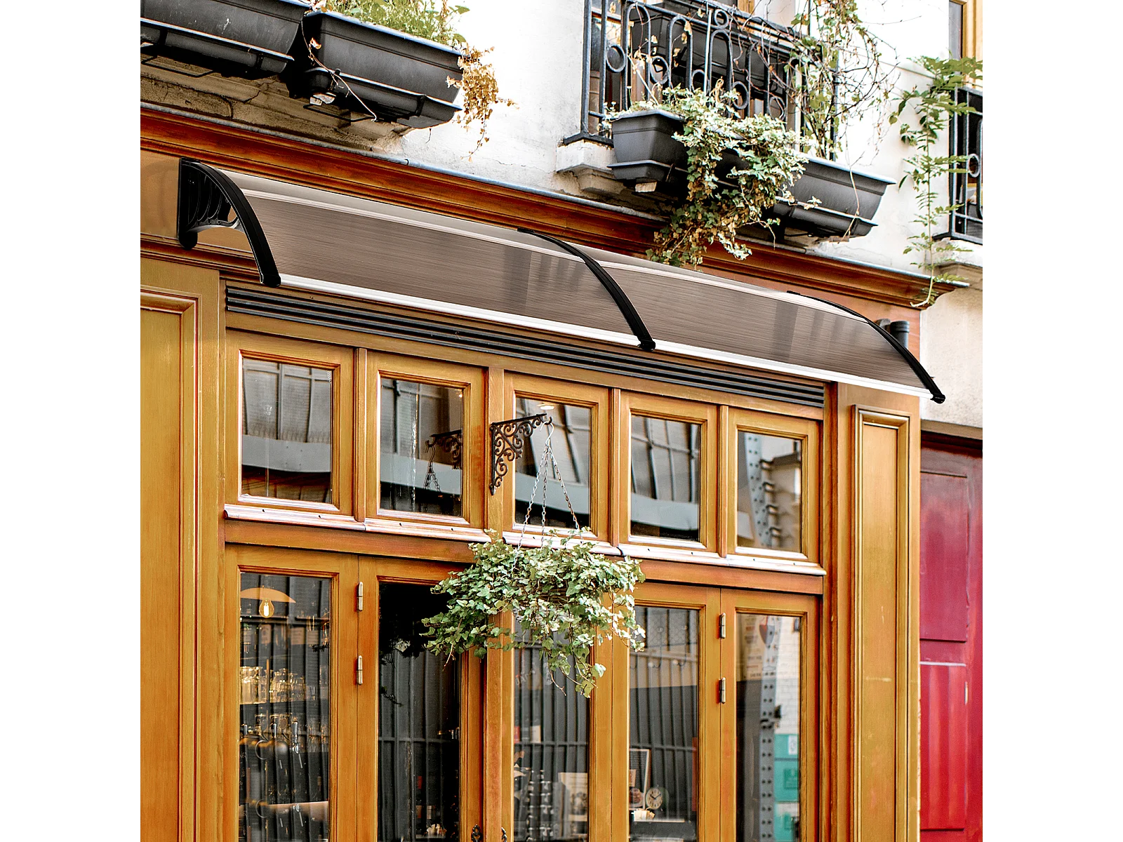 Auvent marquise de porte design voûté arrondi dim. 195L x 80l x 23H cm polycarbonate fumé brun plastique noir