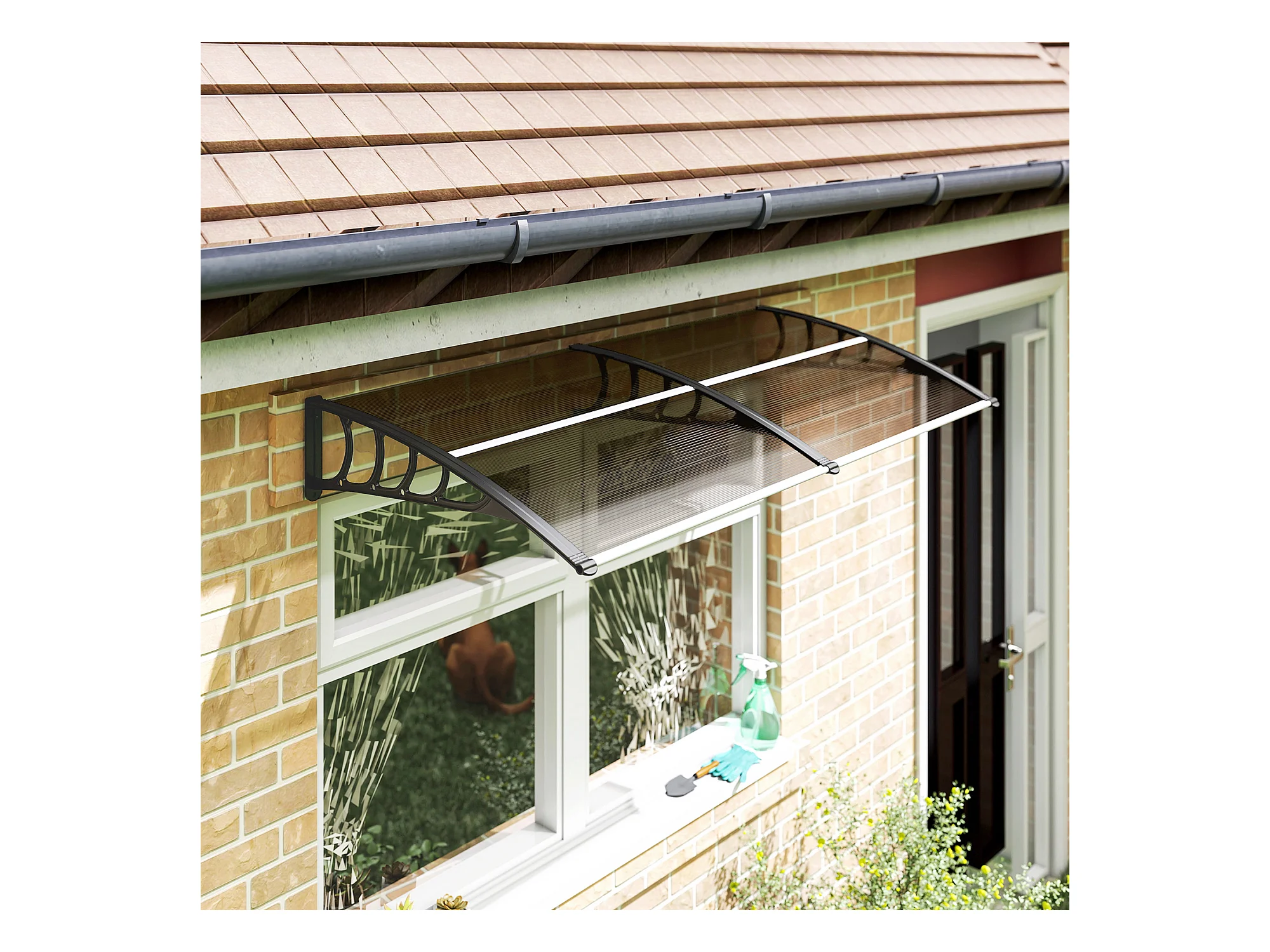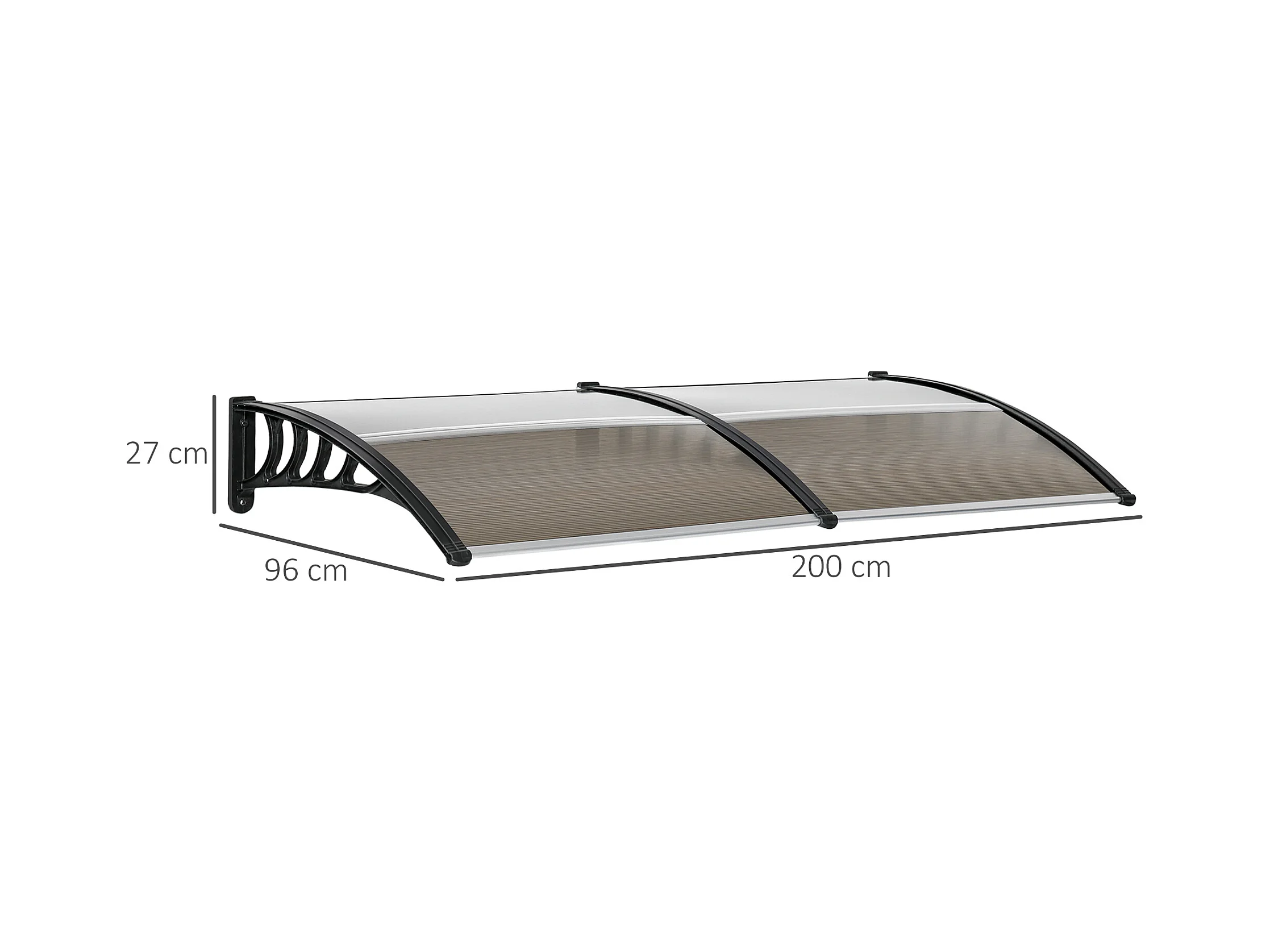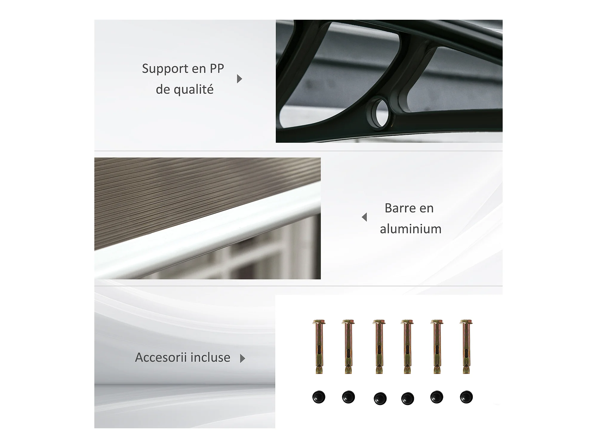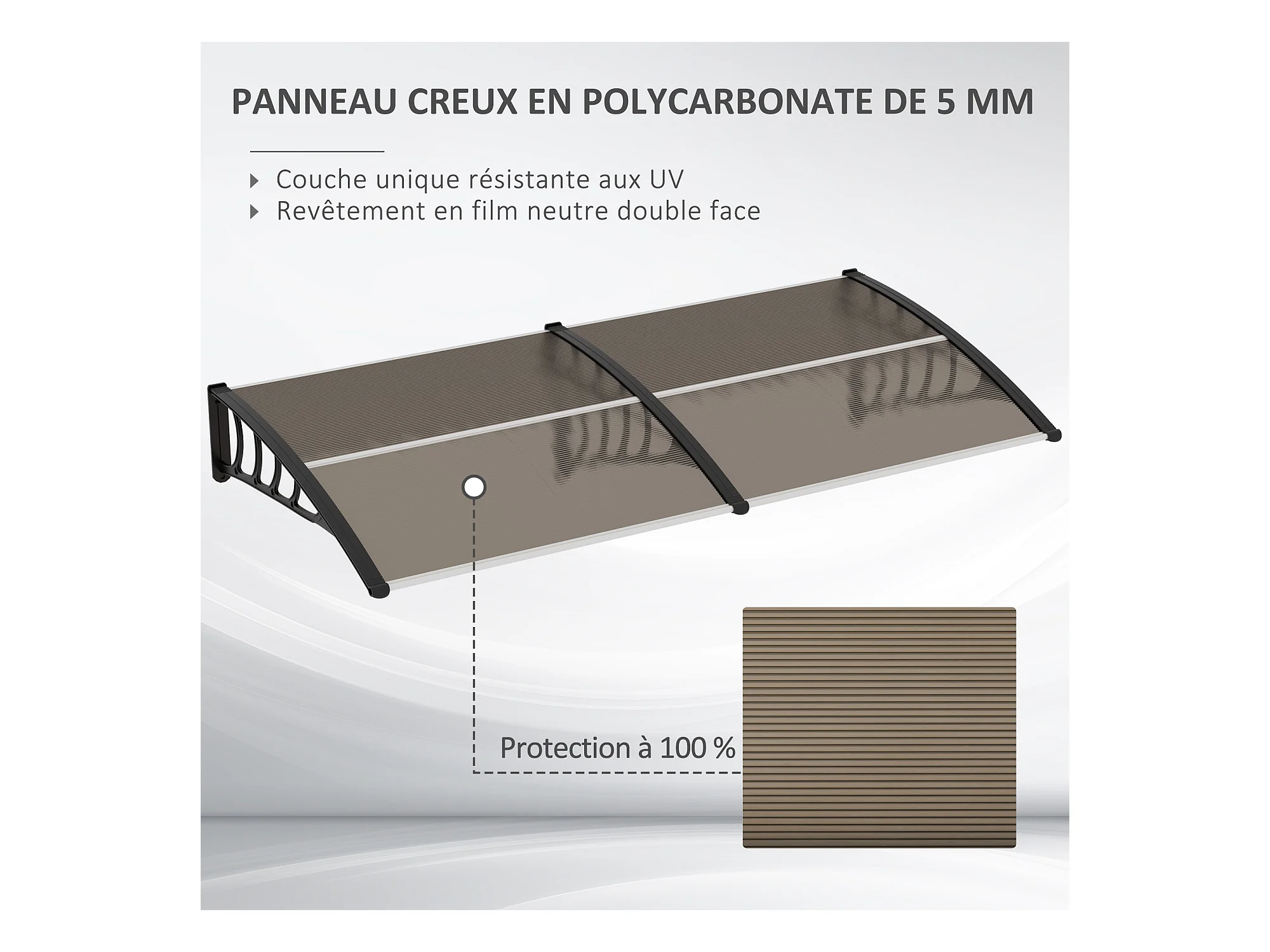 Auvent marquise de porte design voûté arrondi dim. 200L x 96l x 27H cm polycarbonate fumé brun PP noir