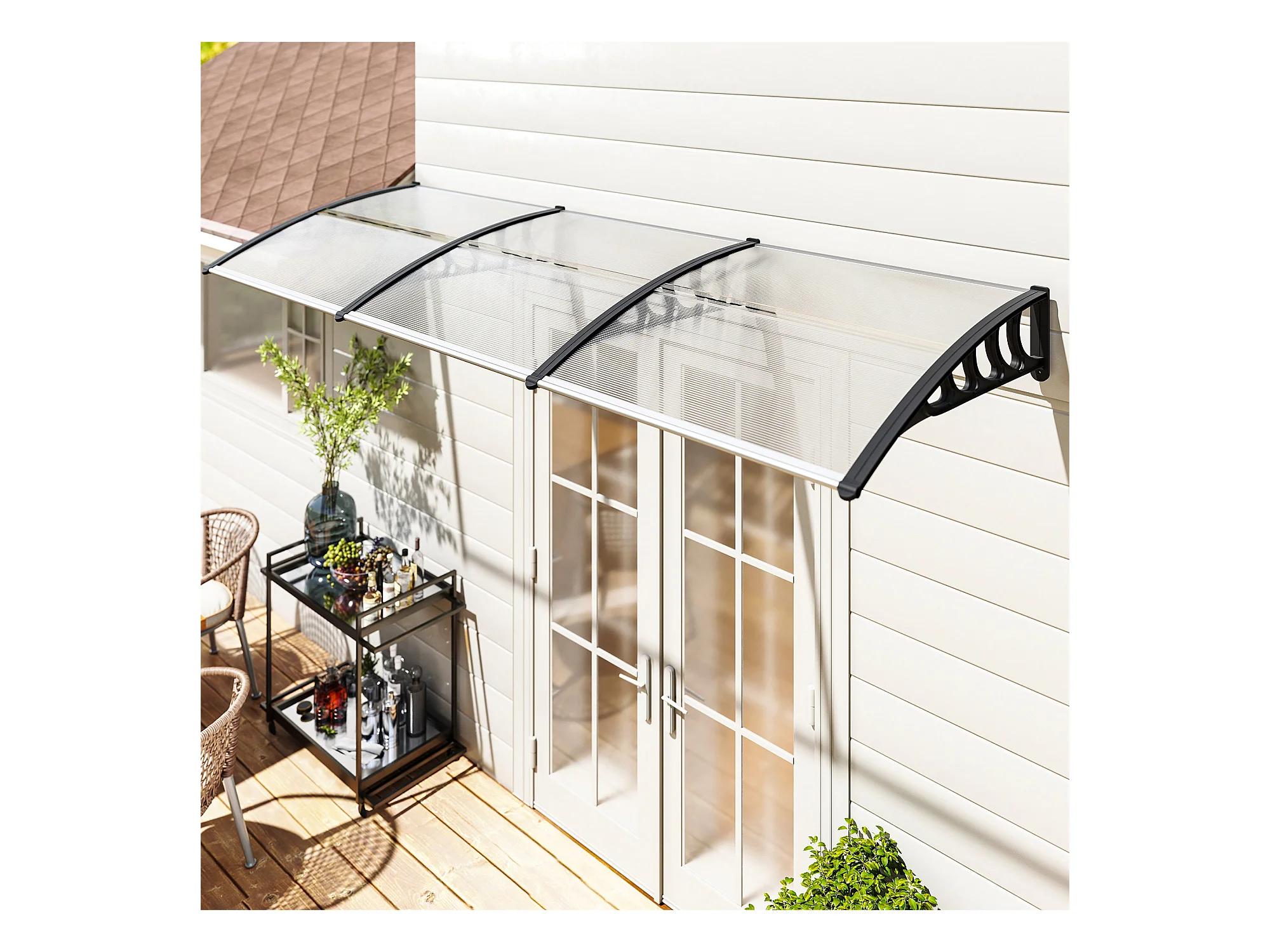 Auvent marquise de porte design voûté arrondi dim. 303L x 96l x 27H cm alu polycarbonate plastique noir
