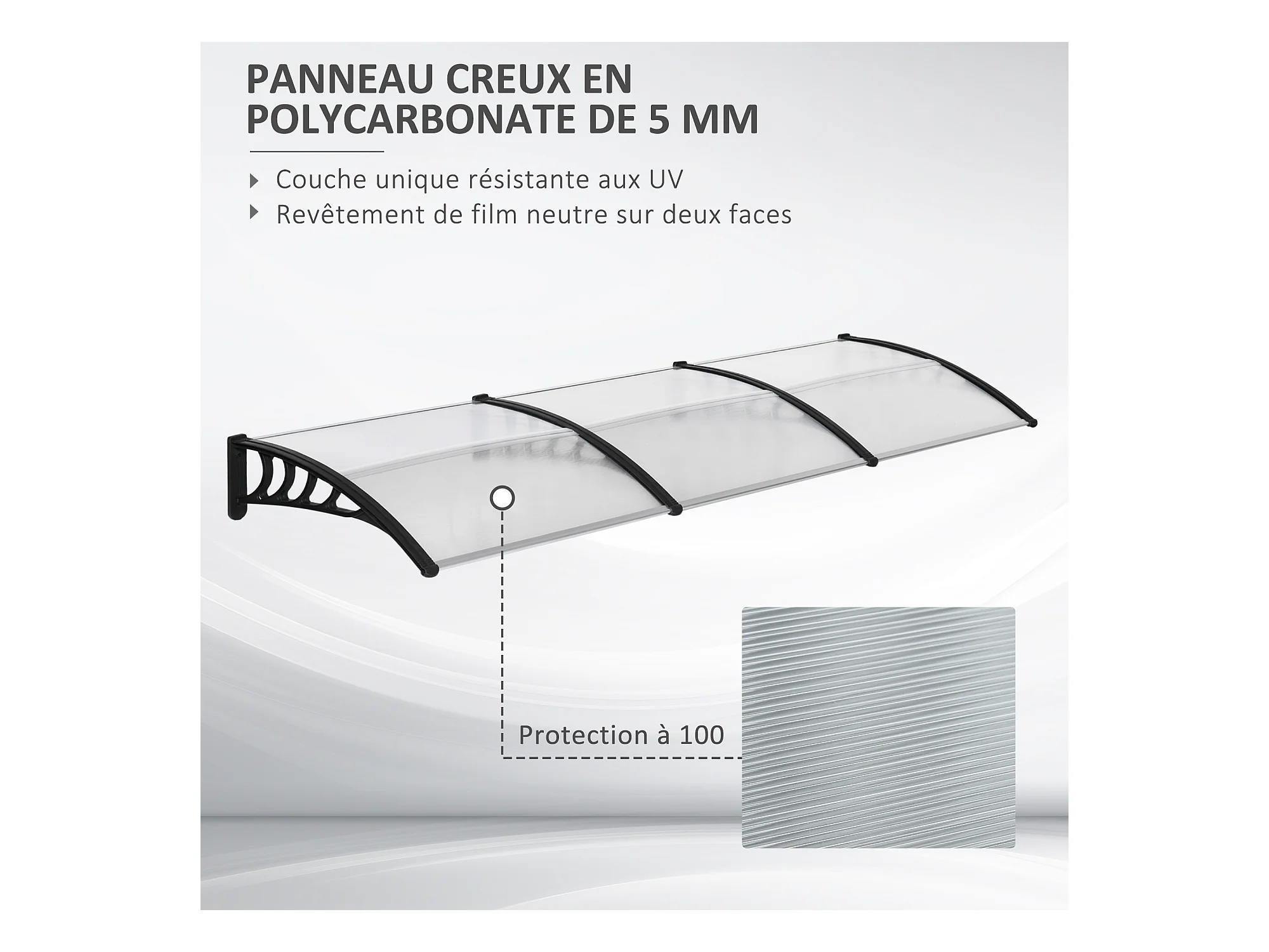 Auvent marquise de porte design voûté arrondi dim. 150L x 90l x 25H cm polycarbonate PP noir